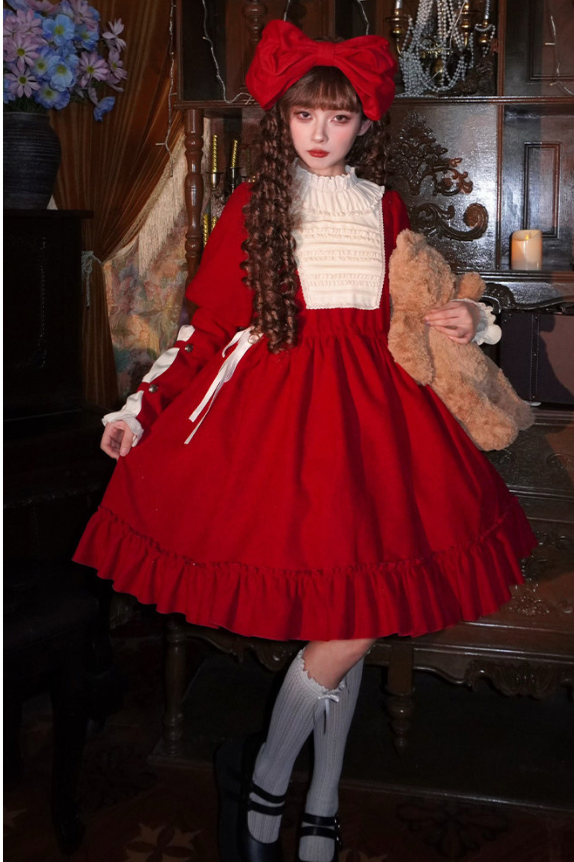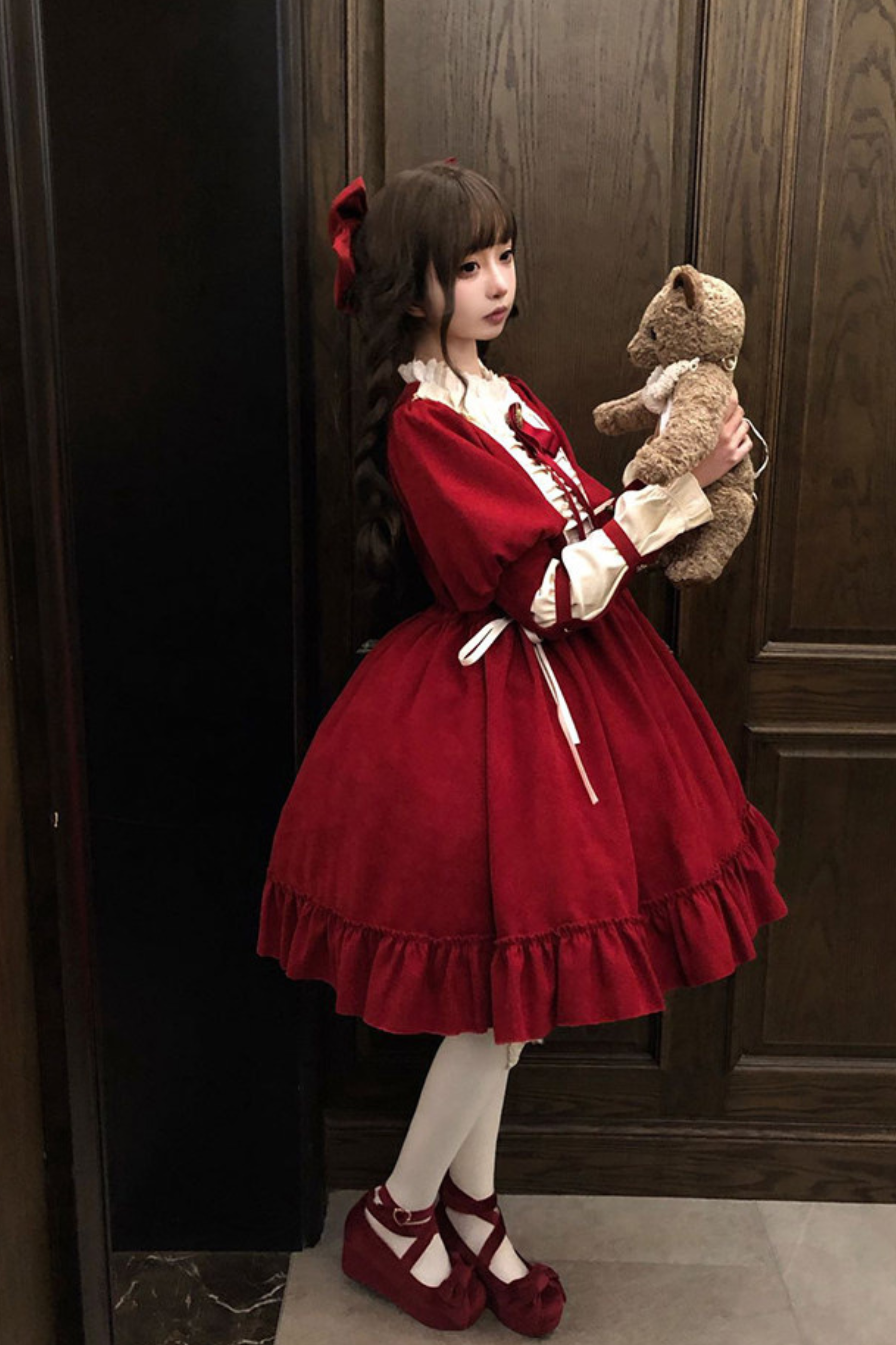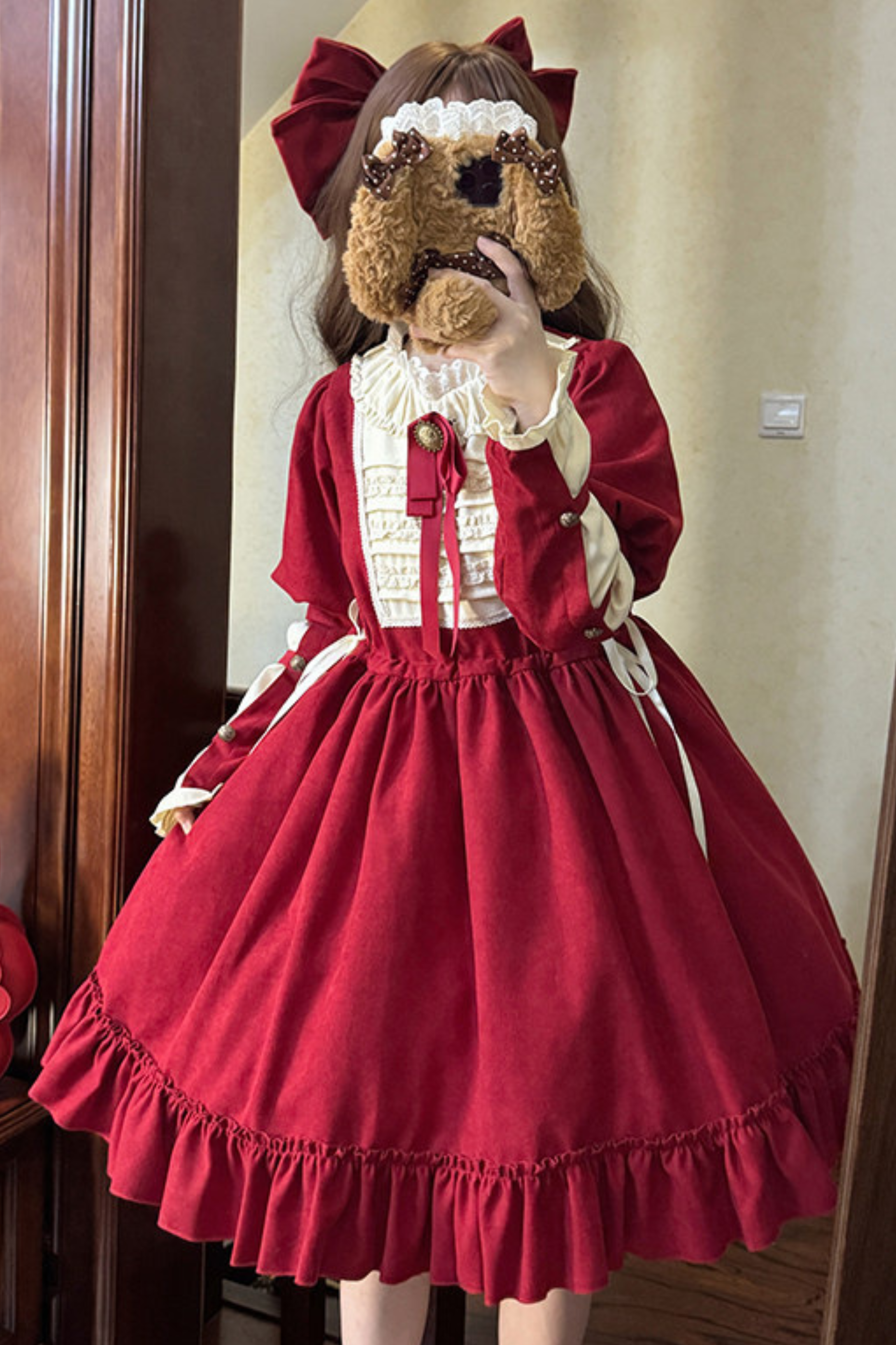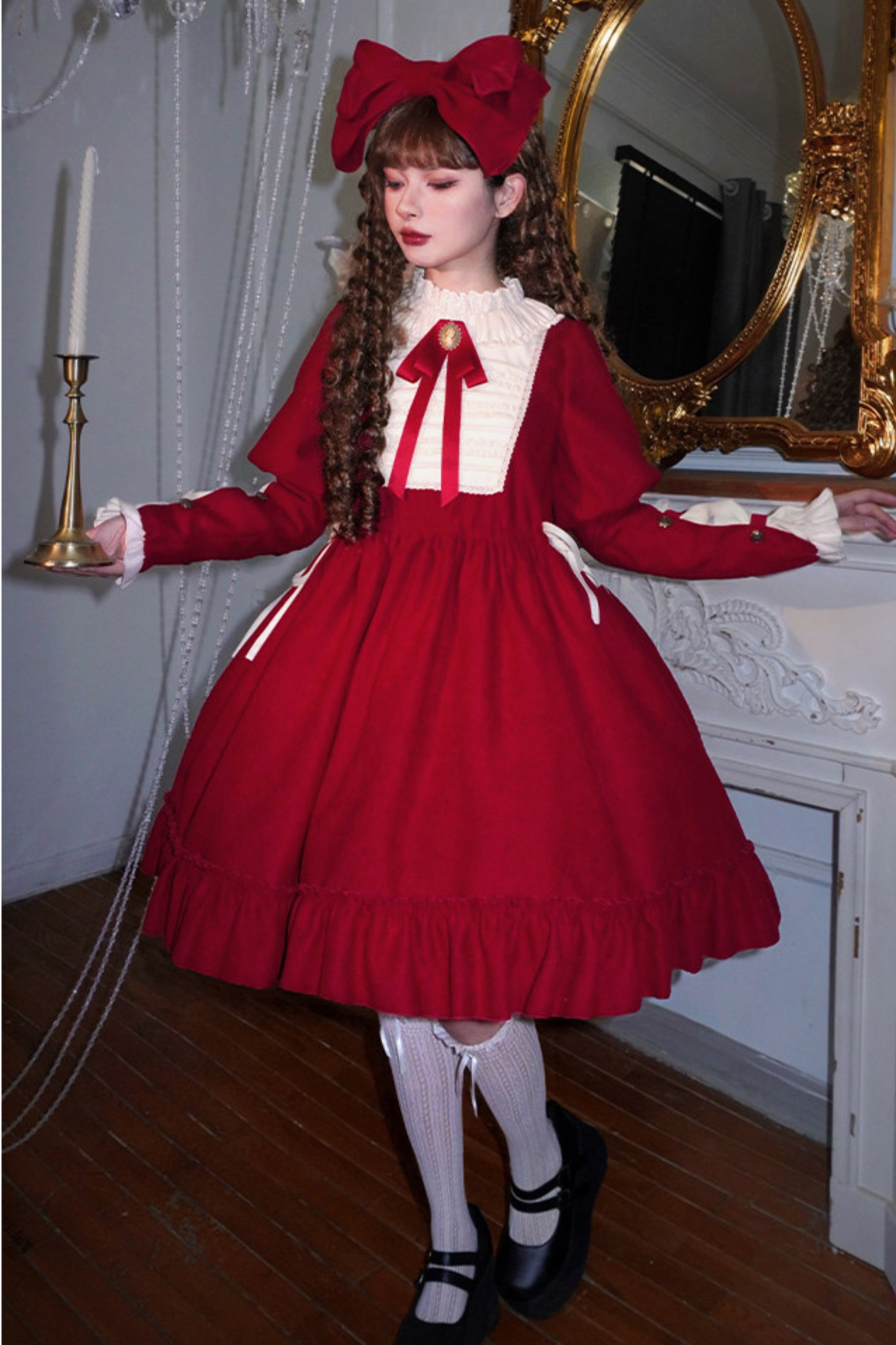 レースラッフルロリータドレス+リボン
