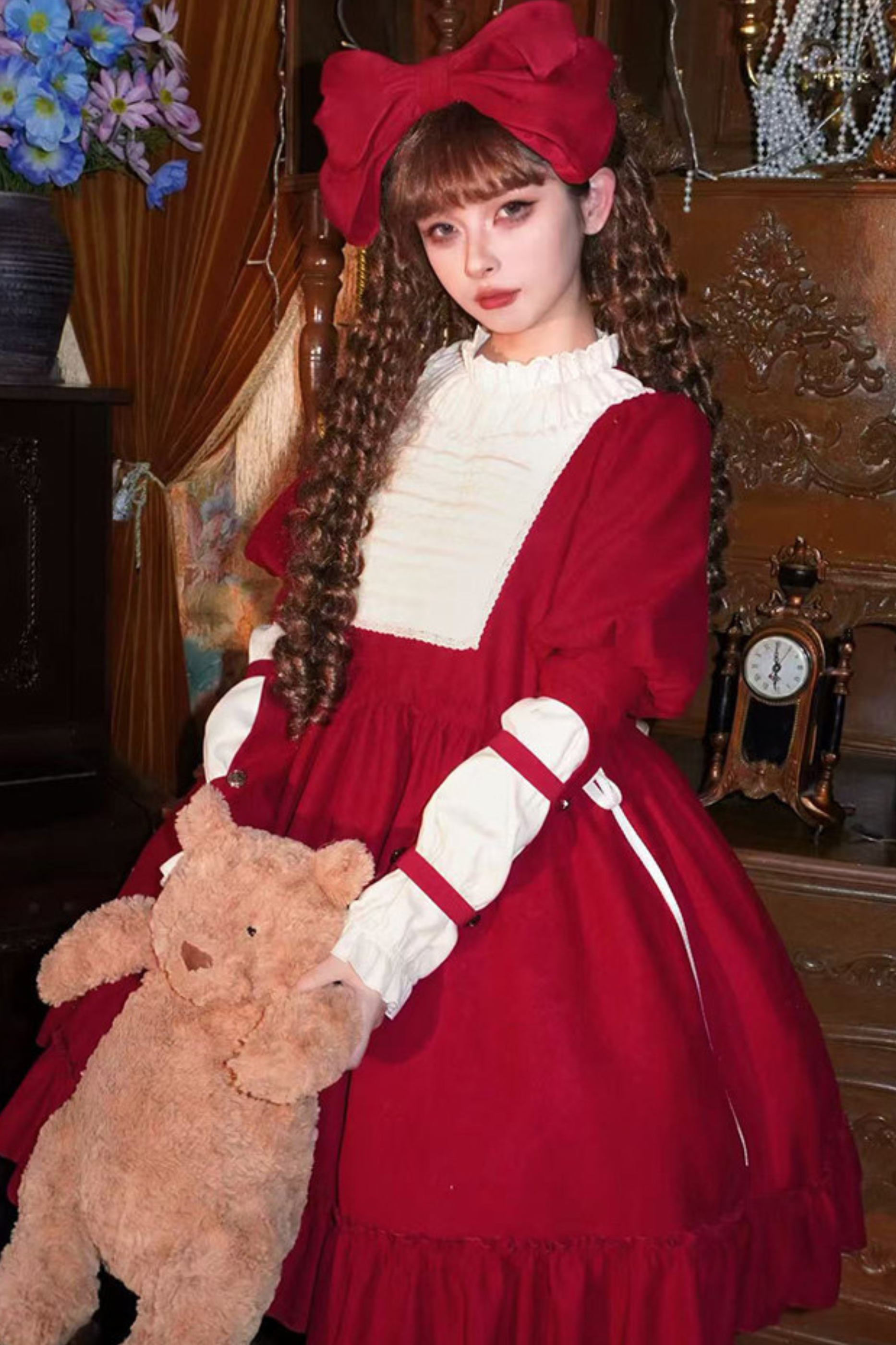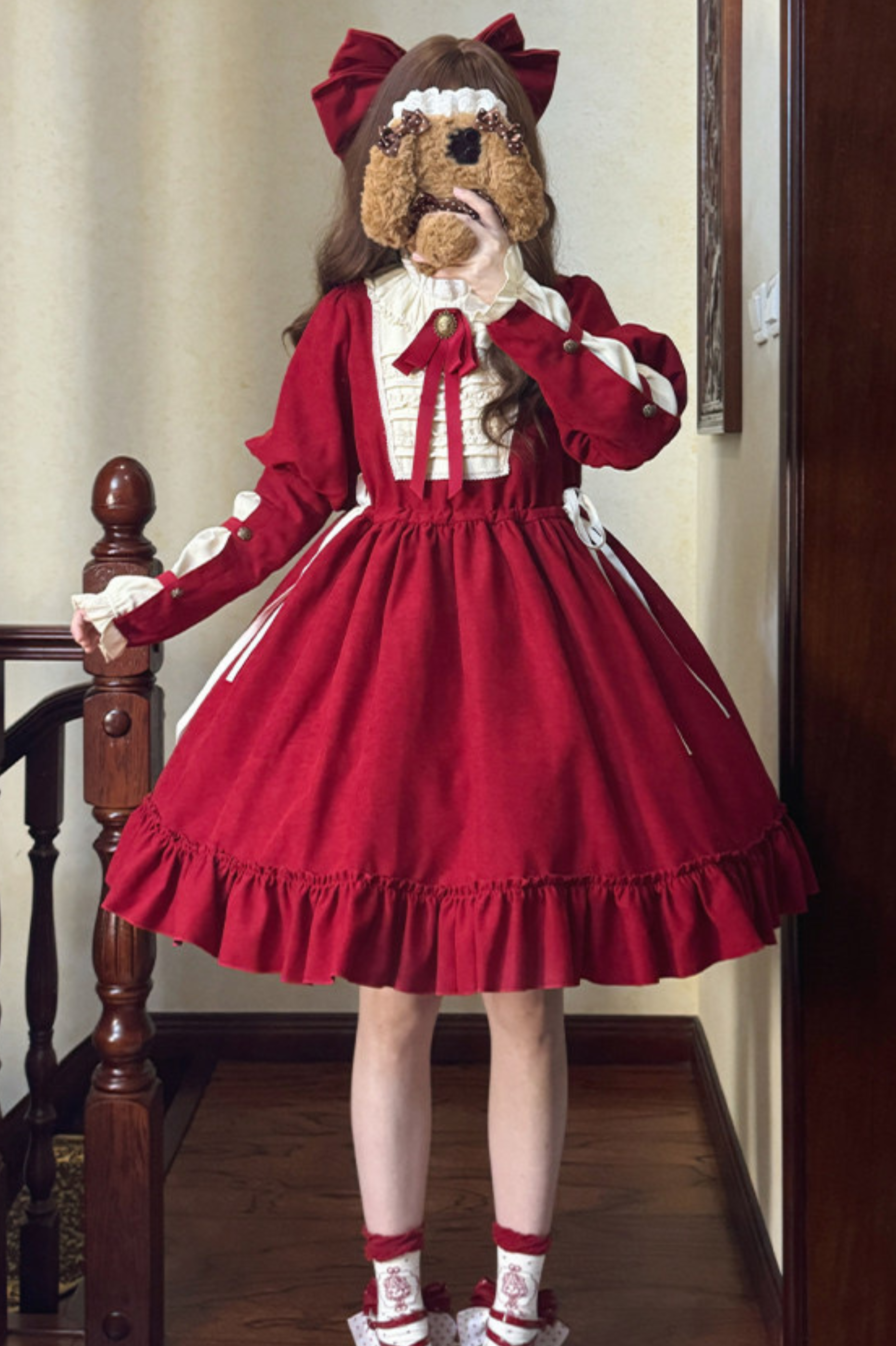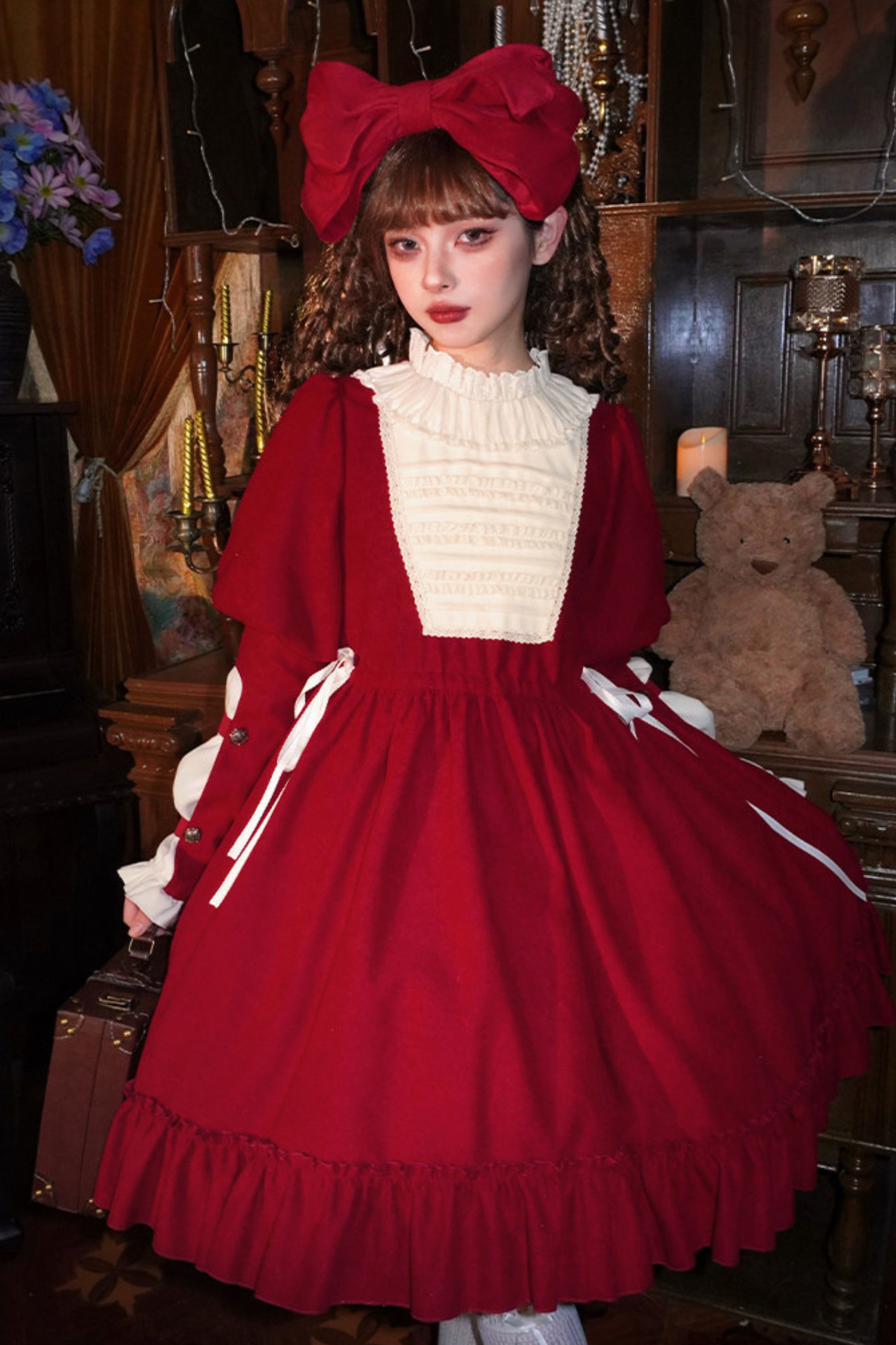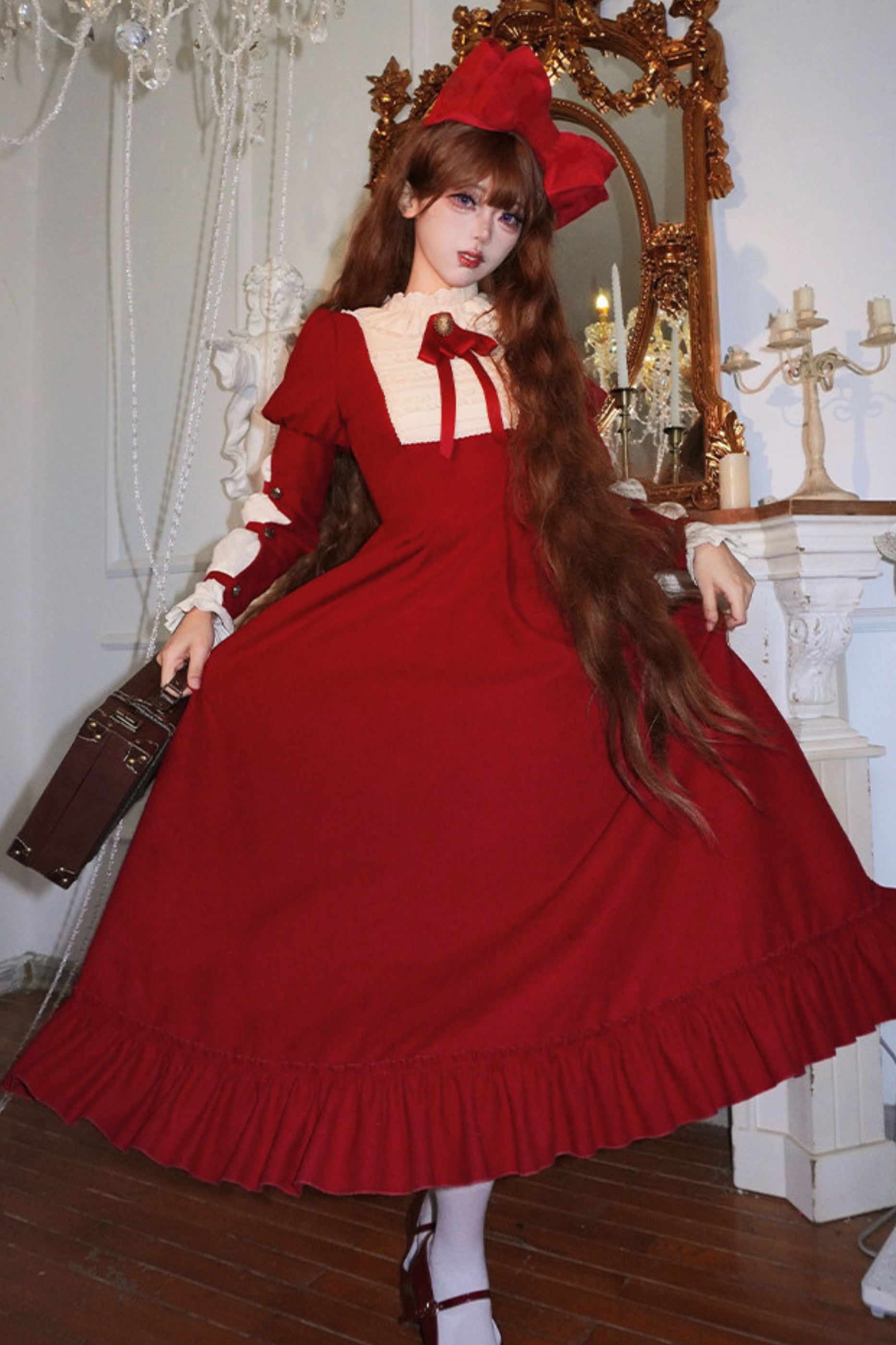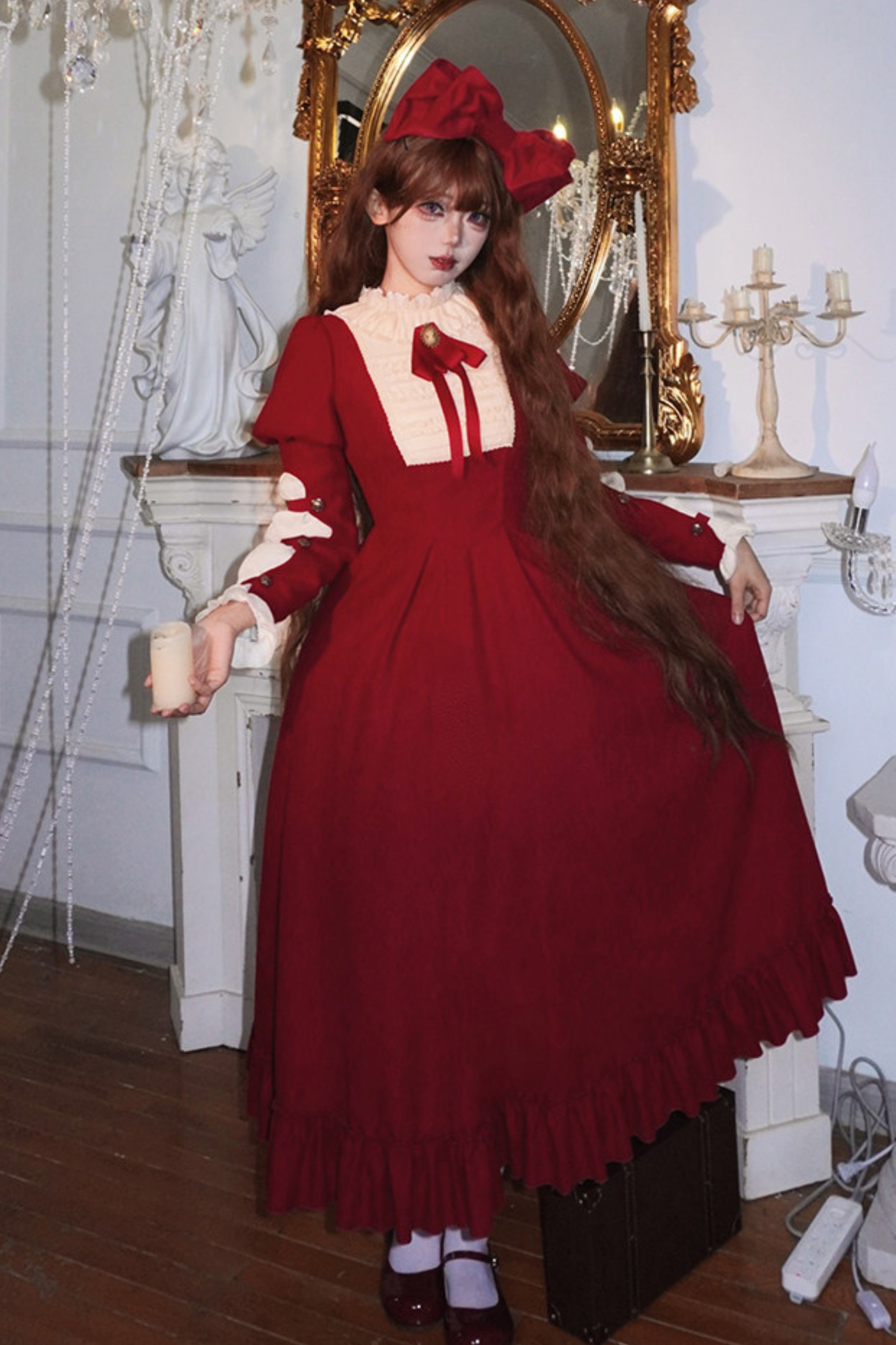 レースラッフルロリータドレス+リボン