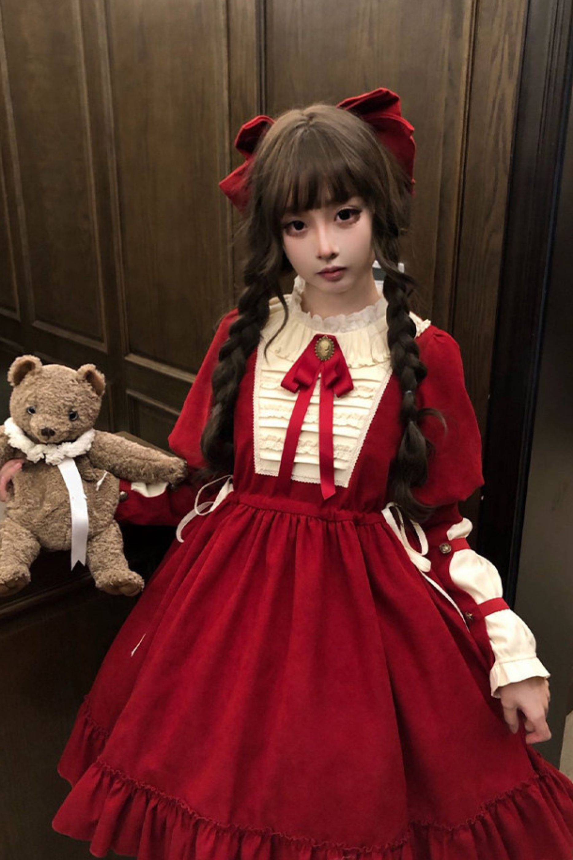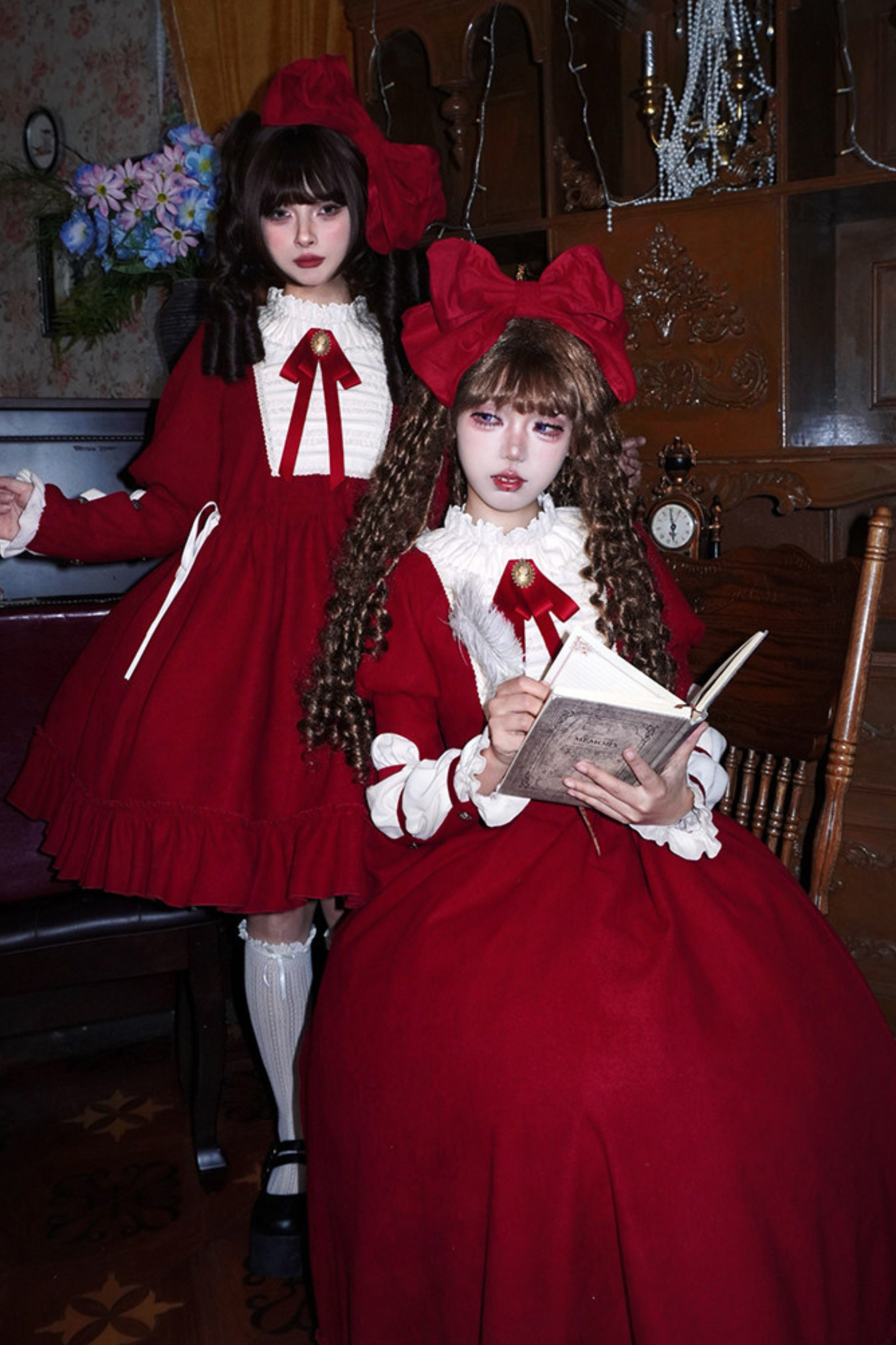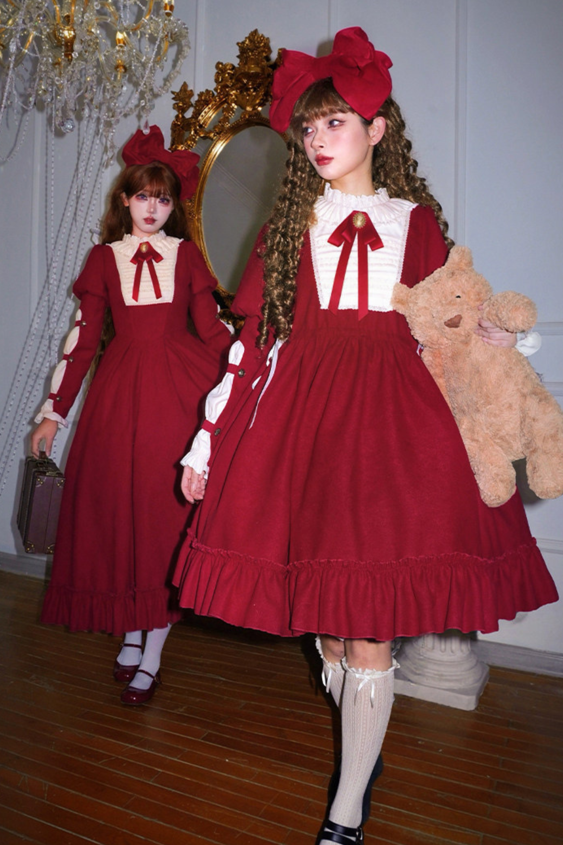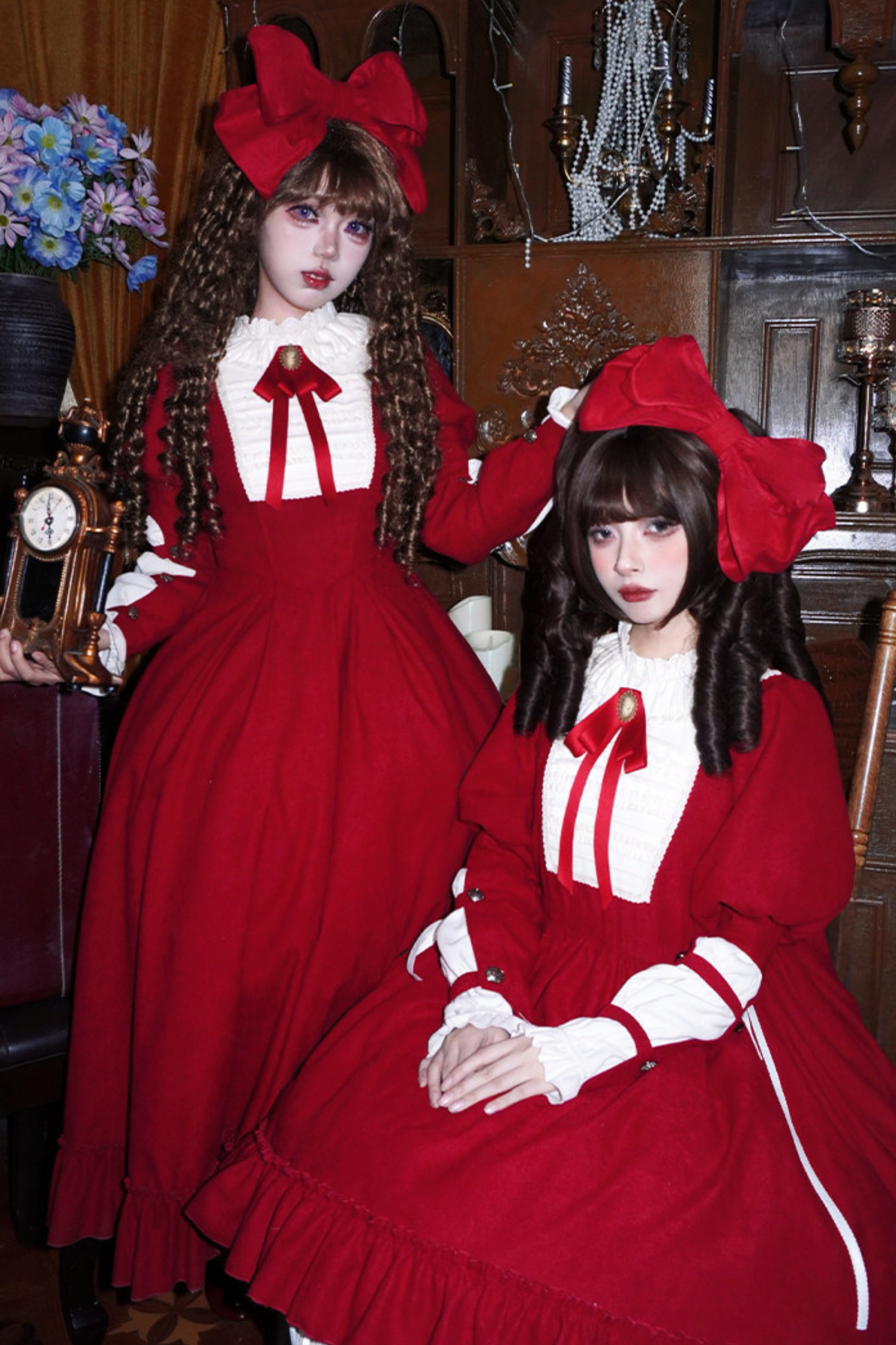 レースラッフルロリータドレス+リボン