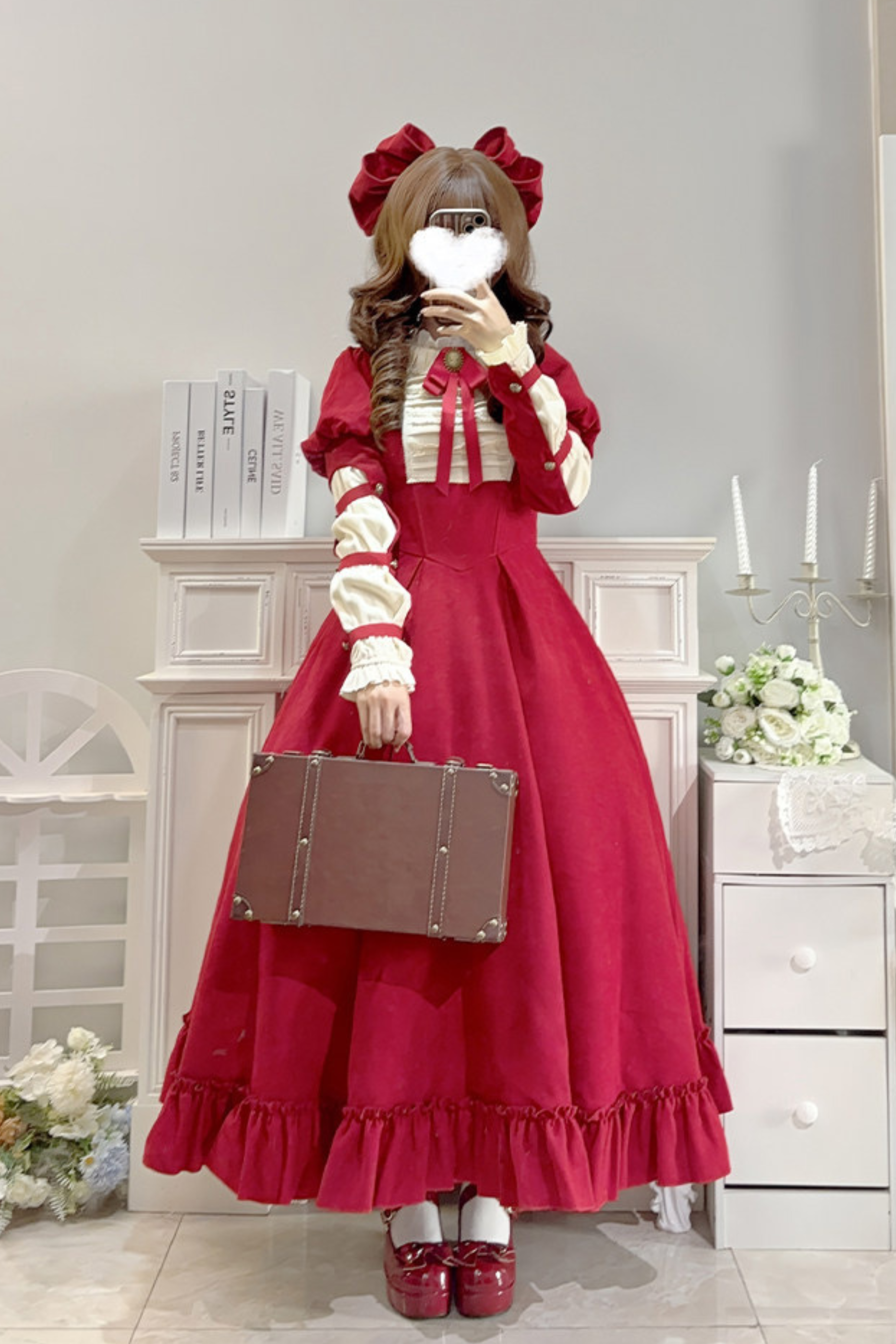 ❤レースラッフルロリータドレス+リボン❤