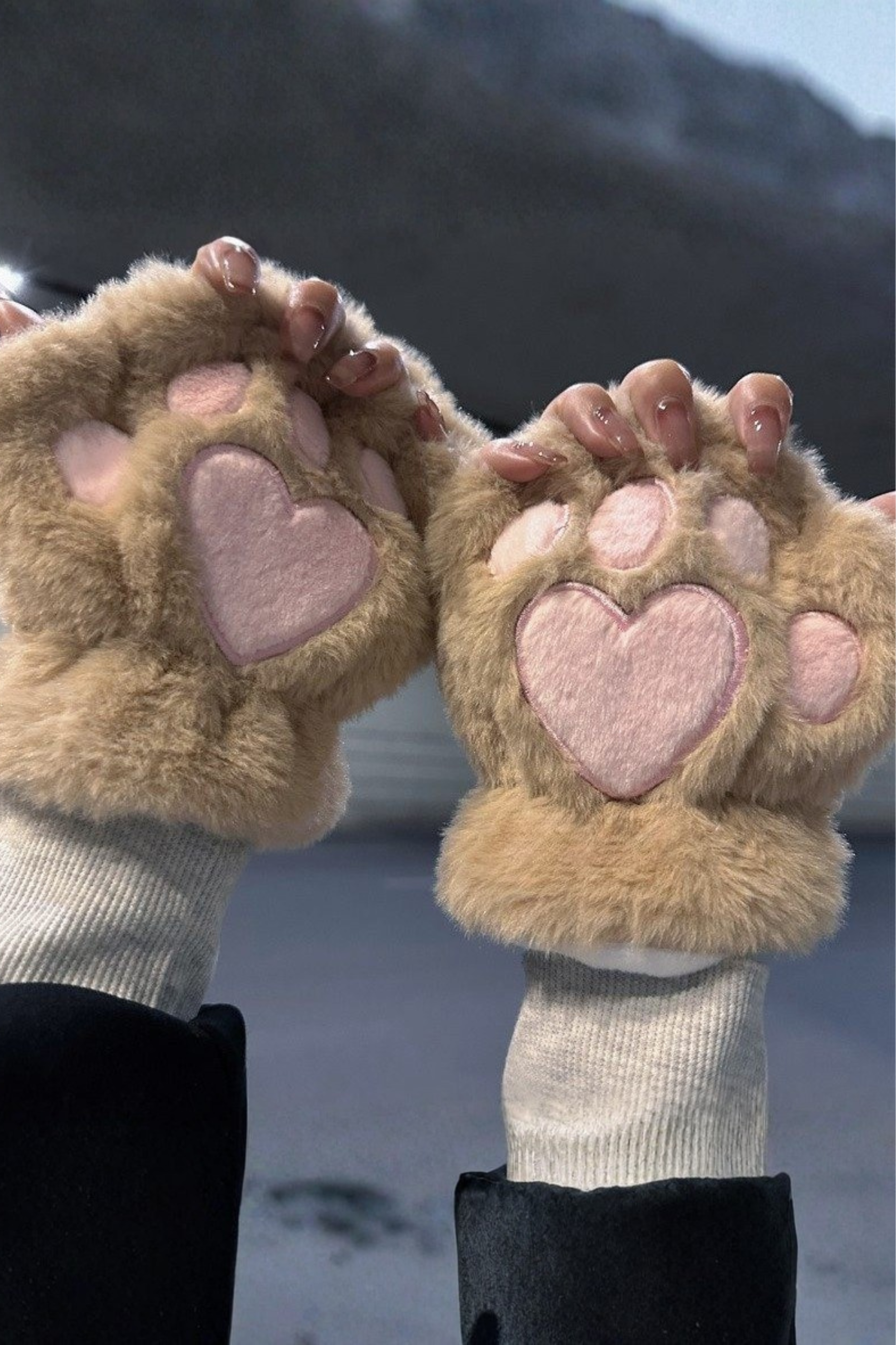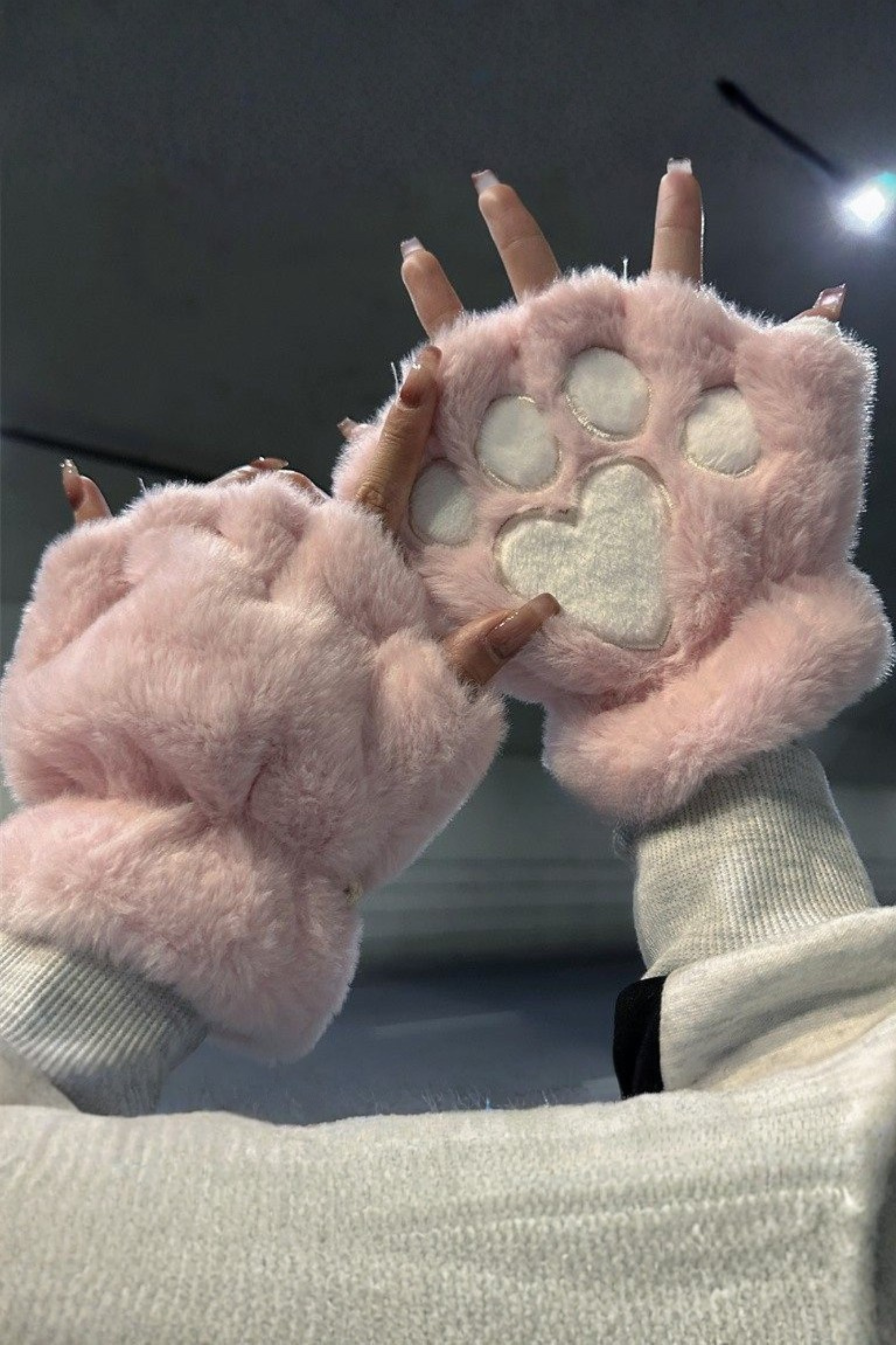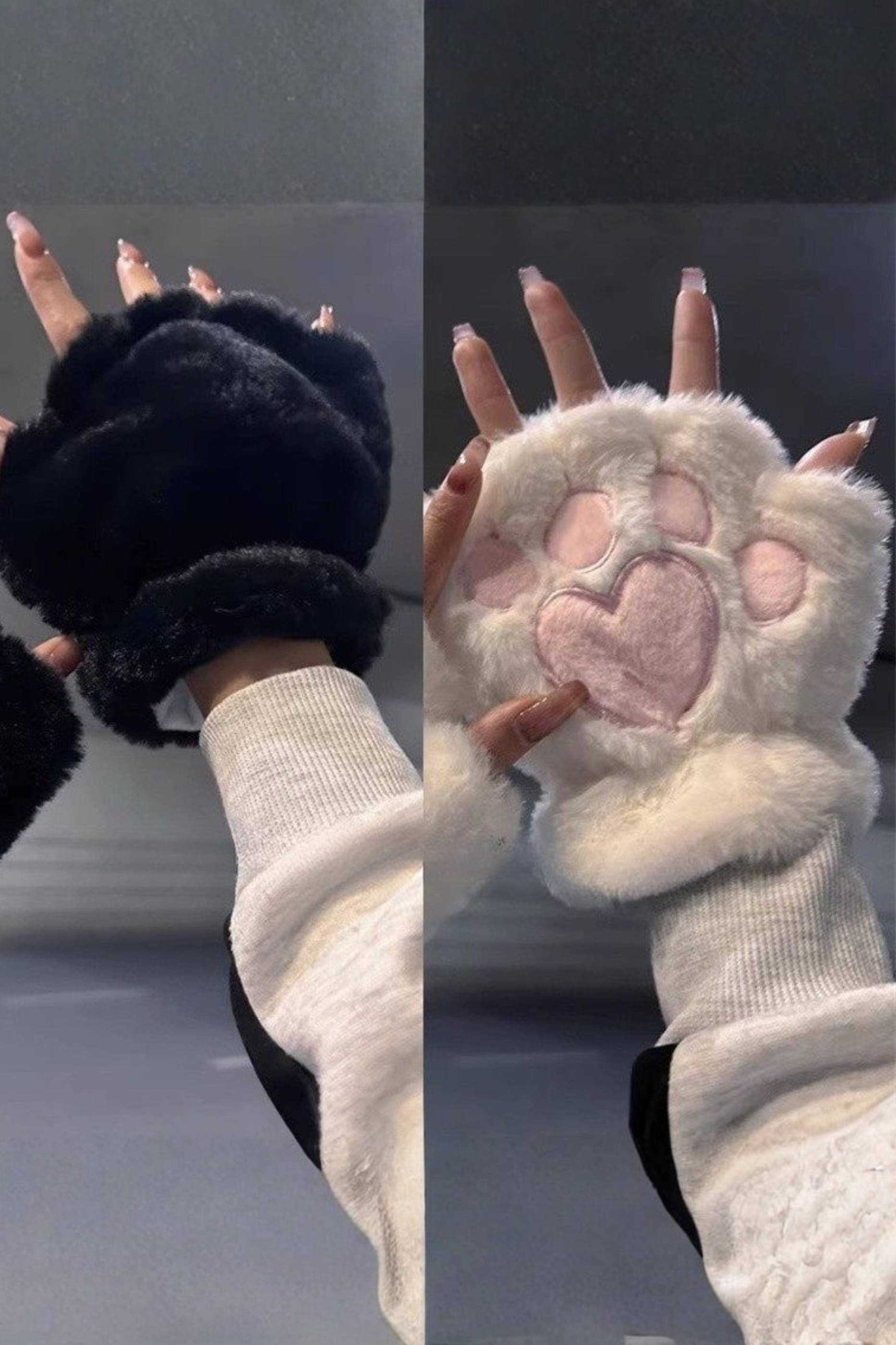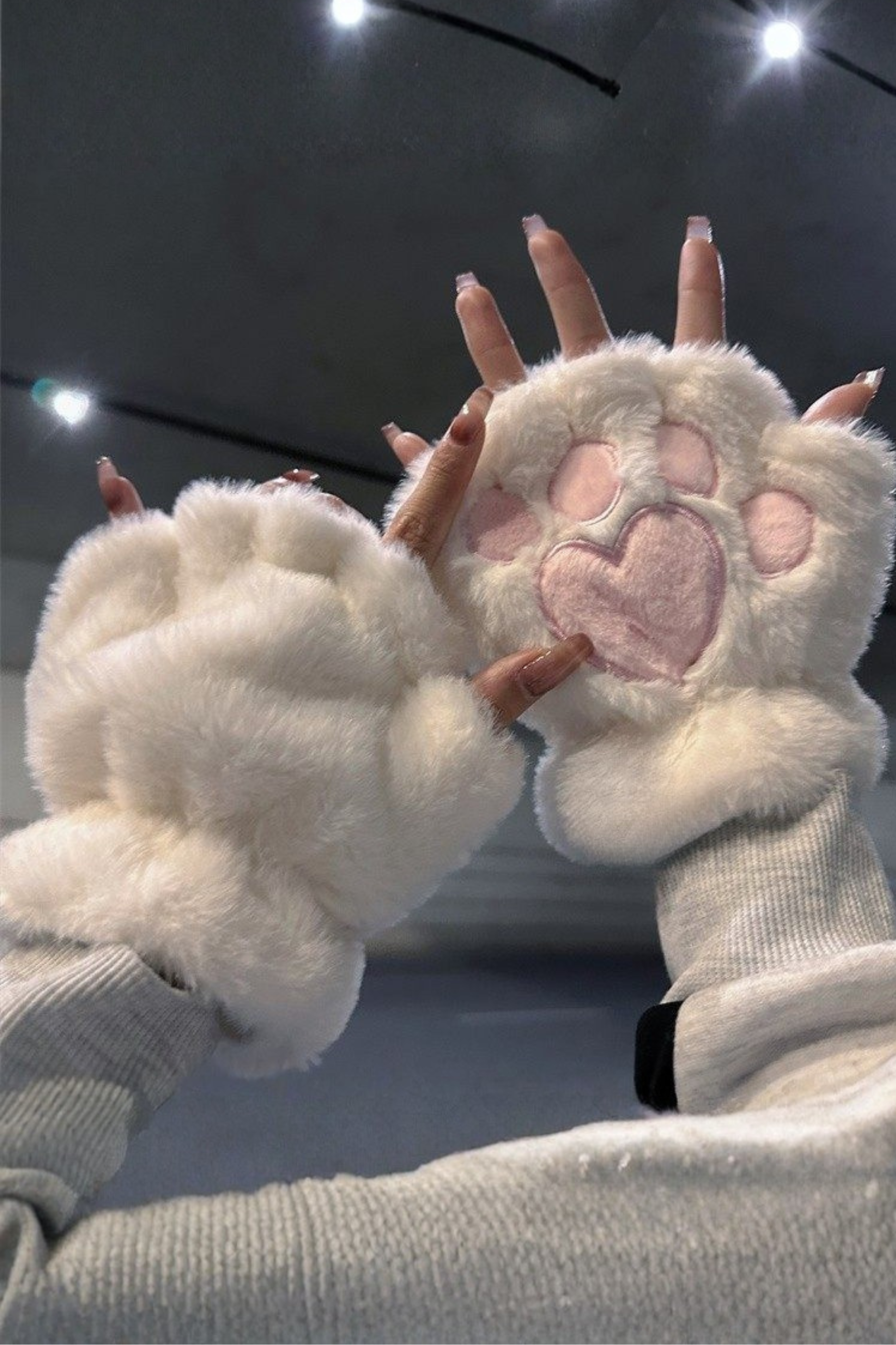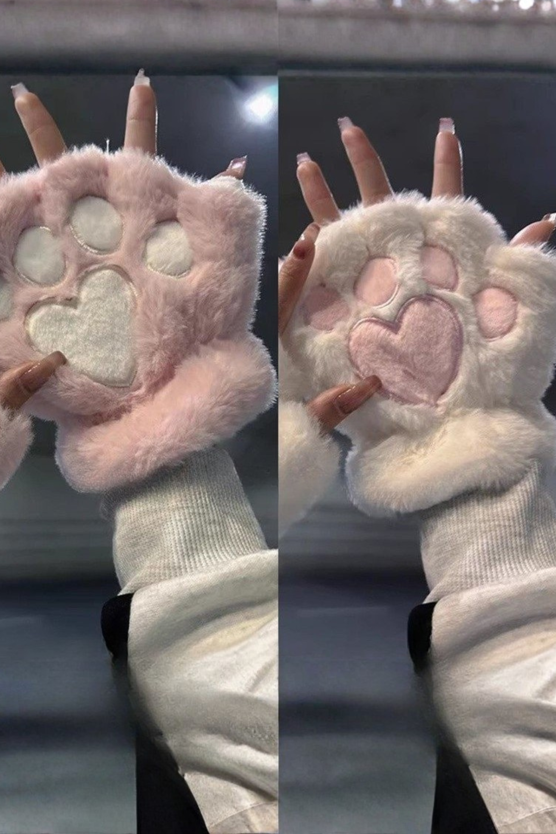 ❤プラッシュハートハーフフィンガーグローブ❤