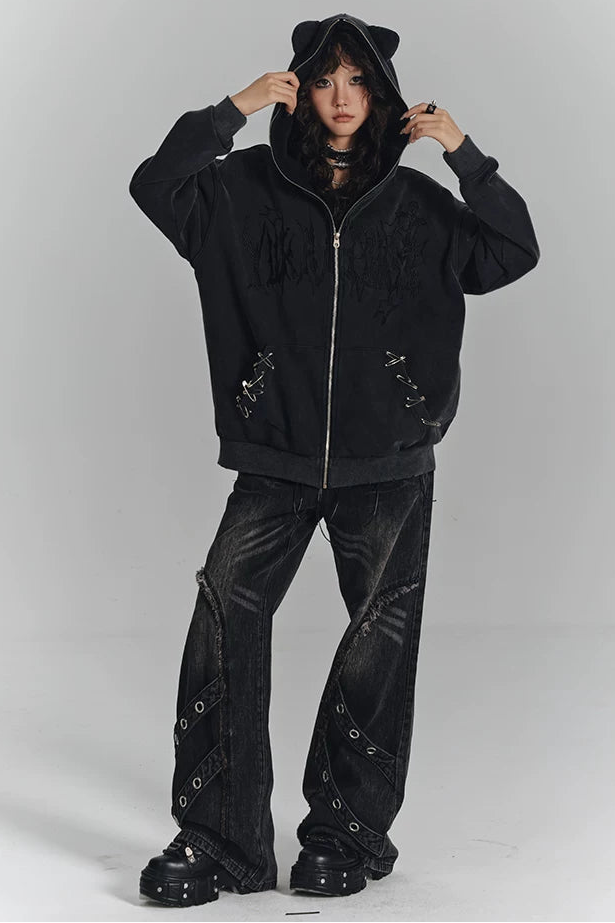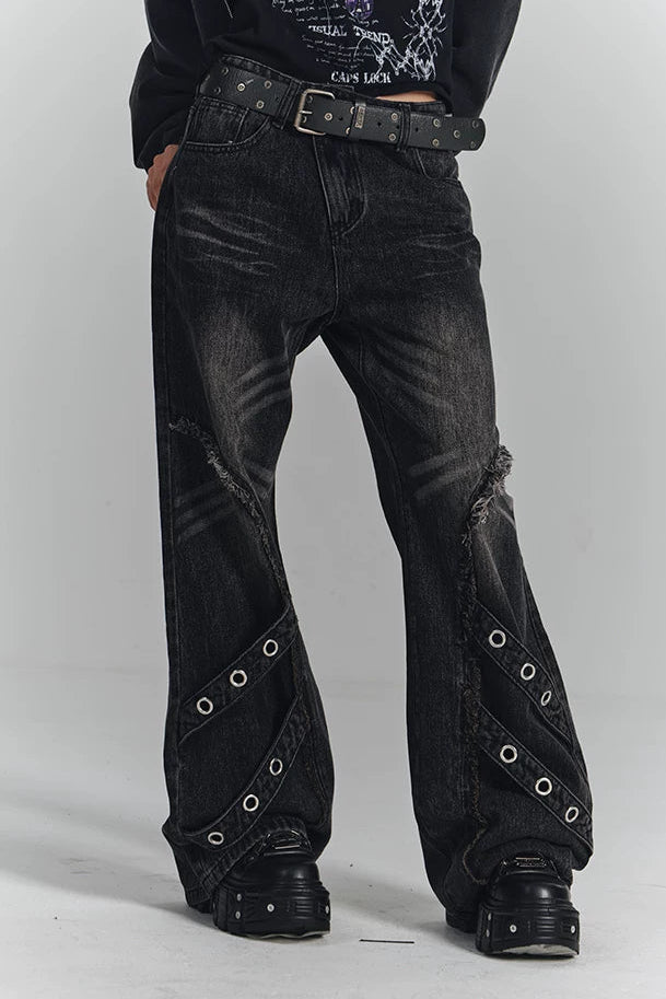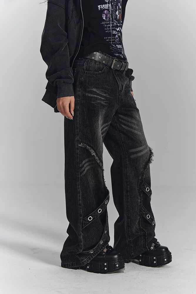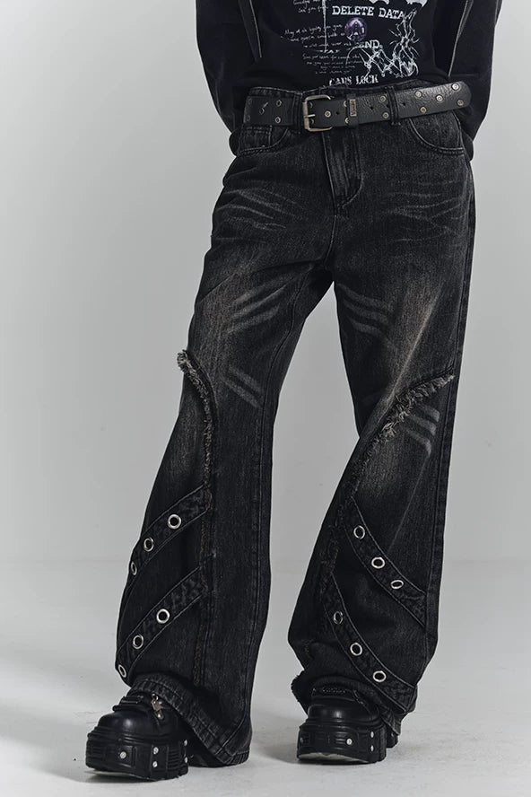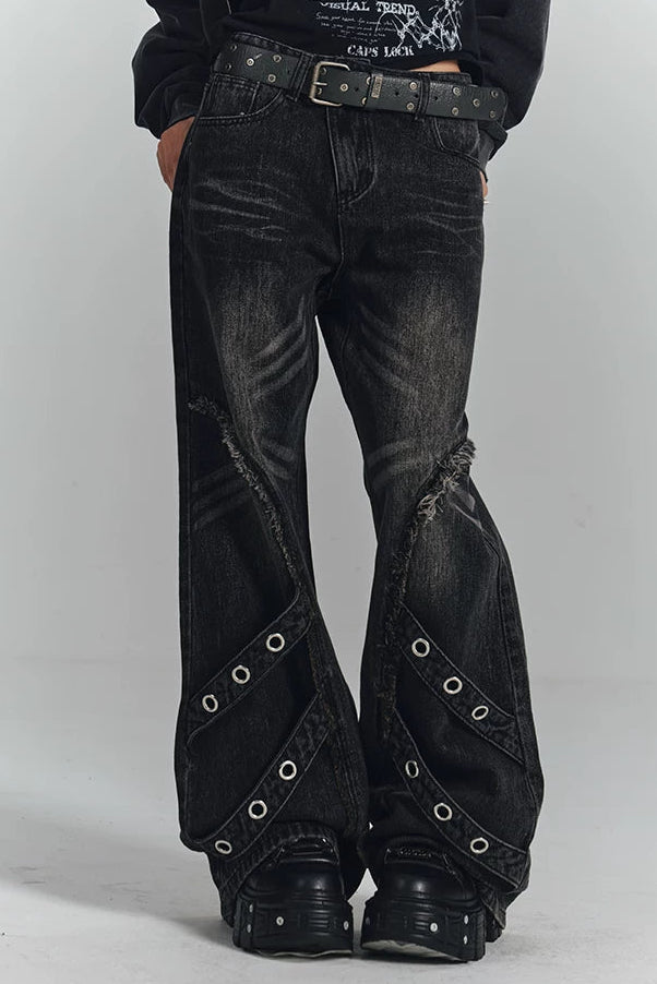 レトロウォッシュドフレイドジーンズパンツ