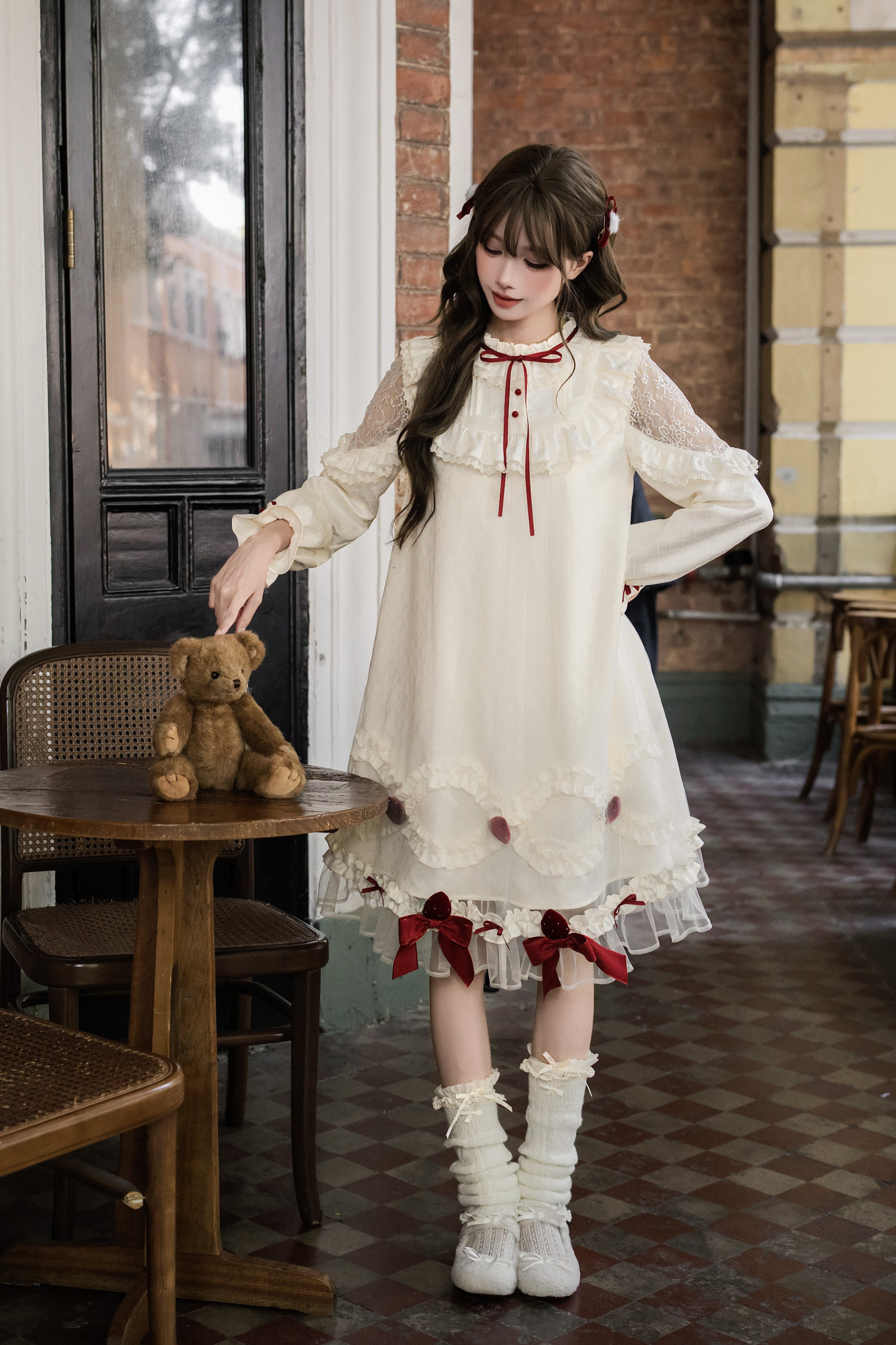 Strawberry Cream Doll Lolita Dress + Strawberry Ribbon