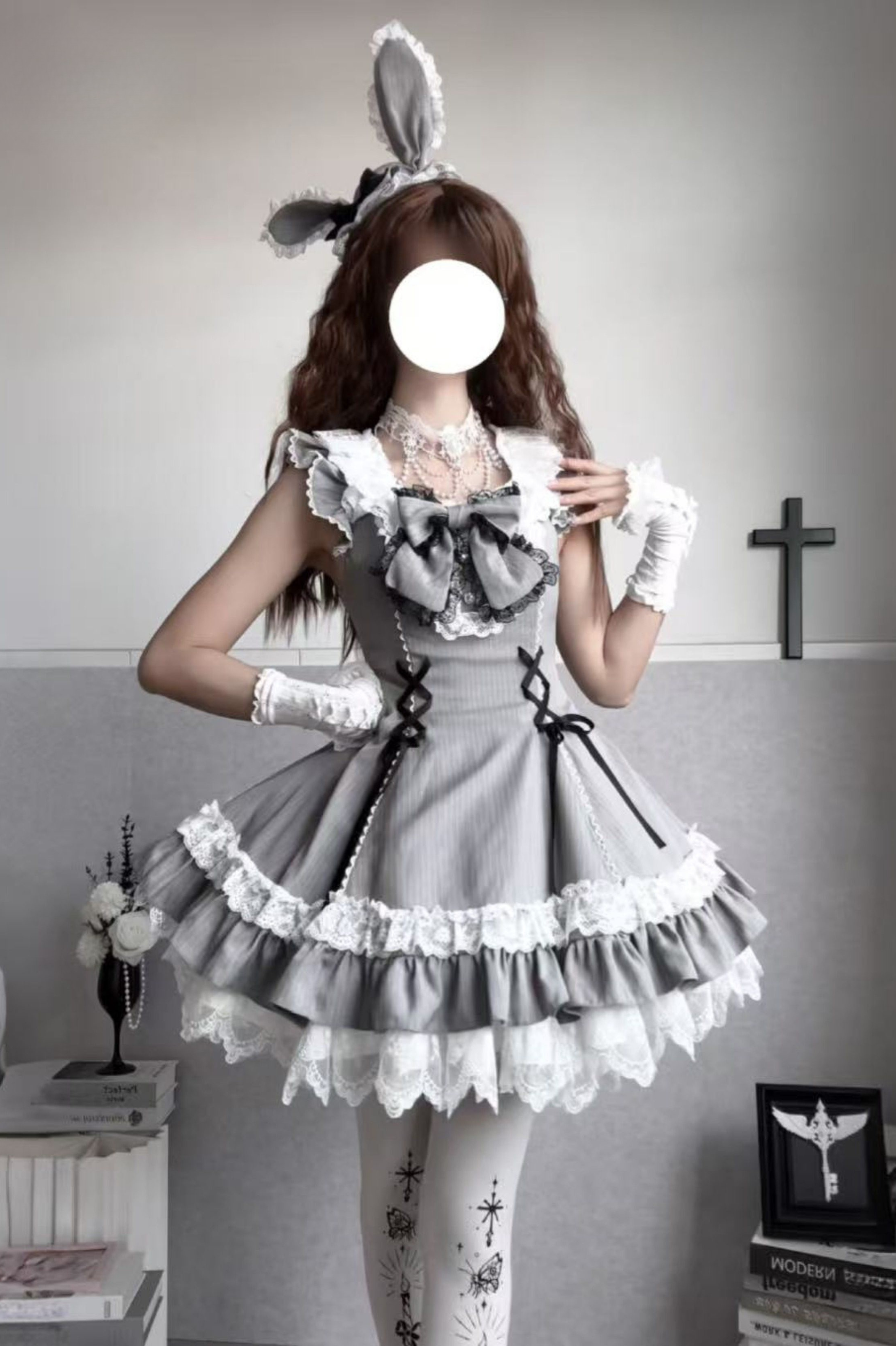 ❤スイートロリータストライプジャンパースカートス+ラビットハット❤