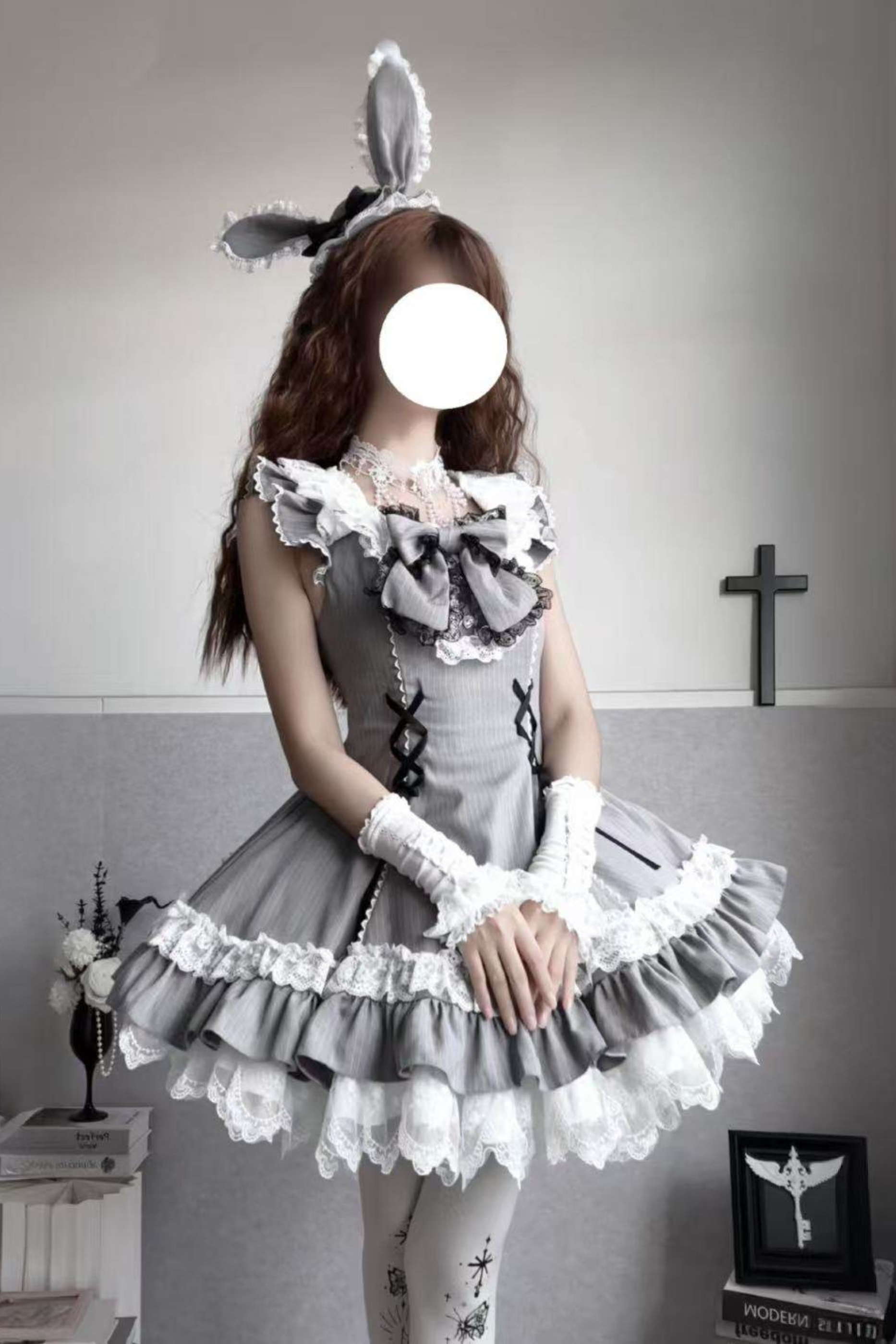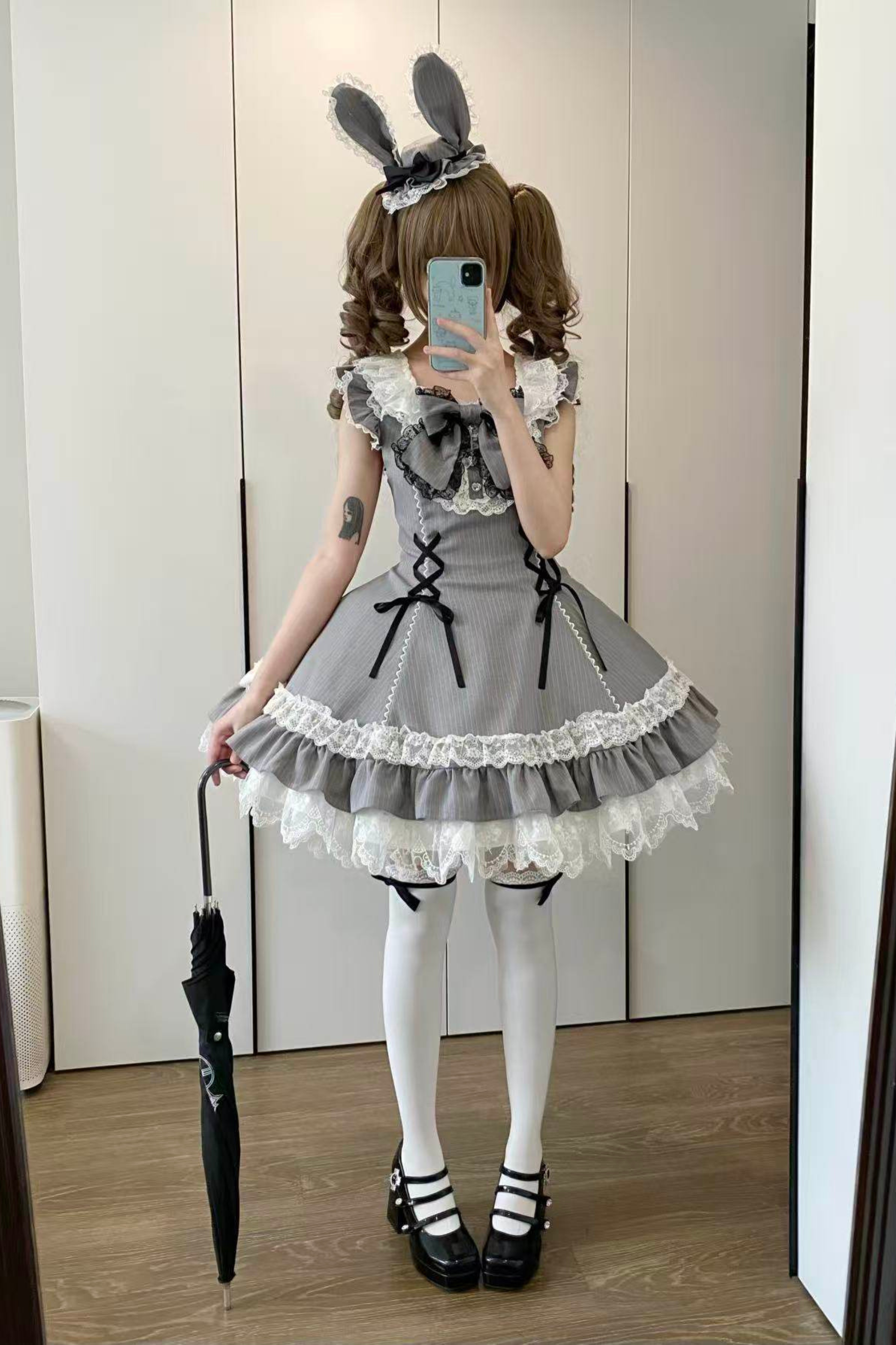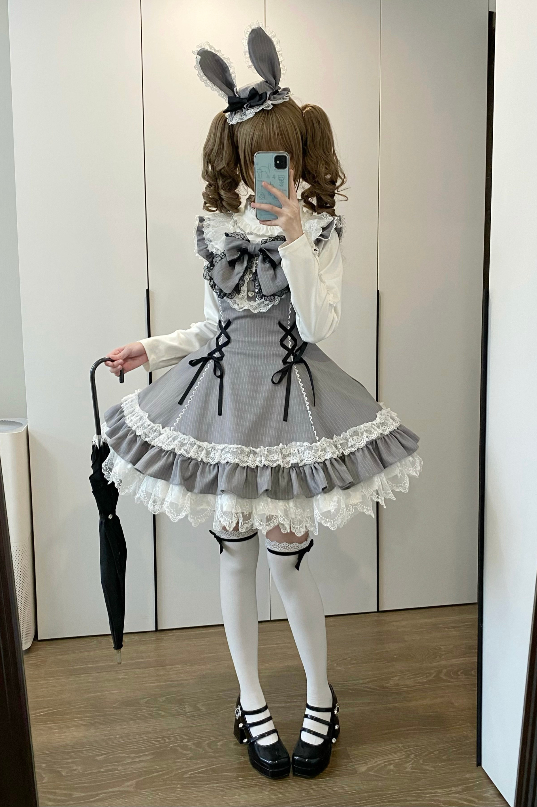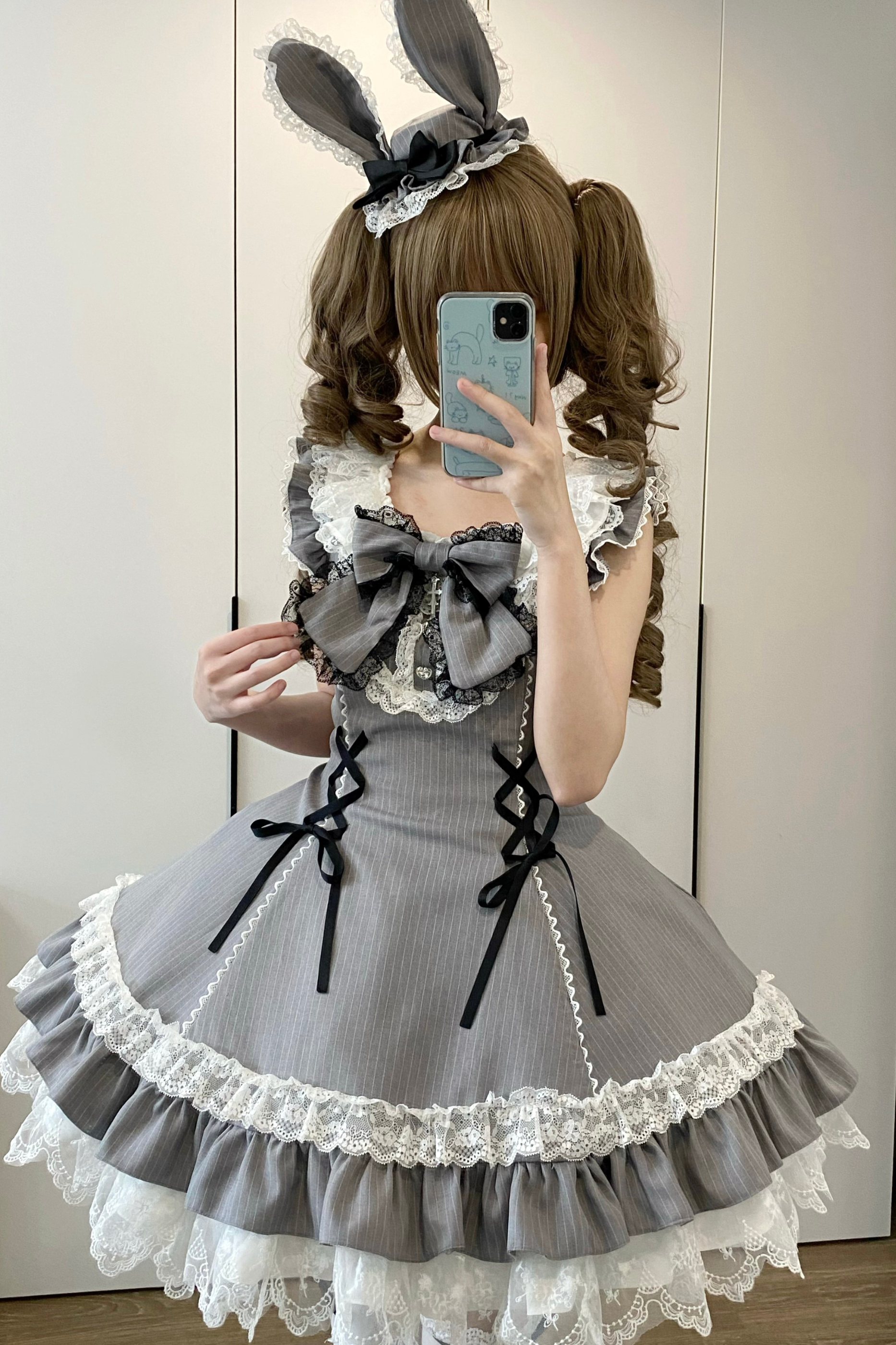 スイートロリータストライプジャンパースカートス+ラビットハット