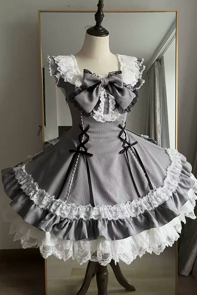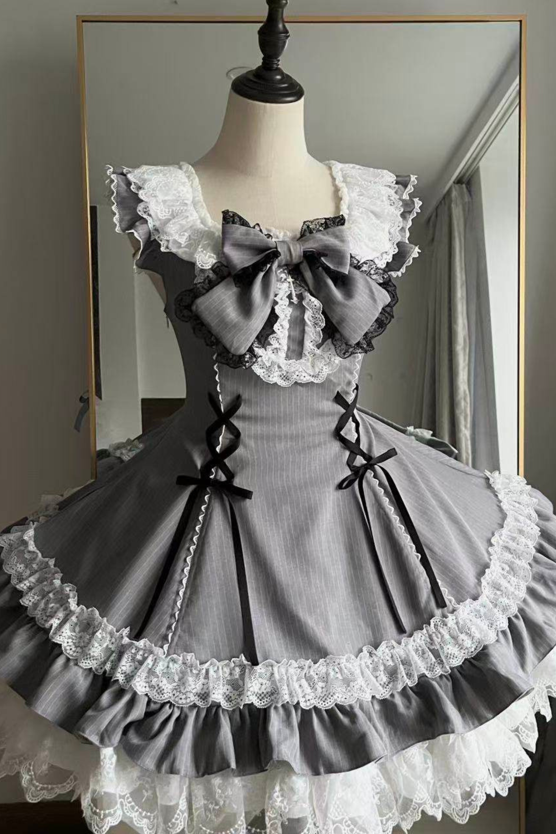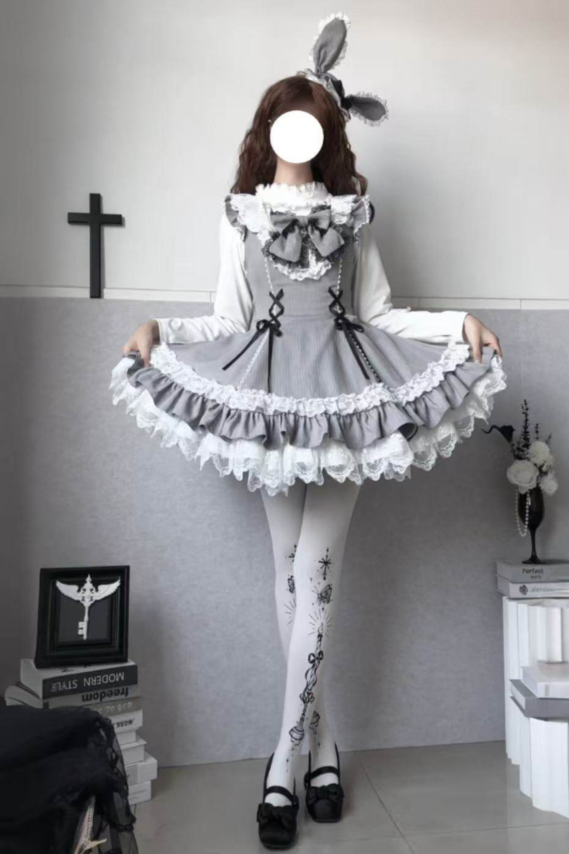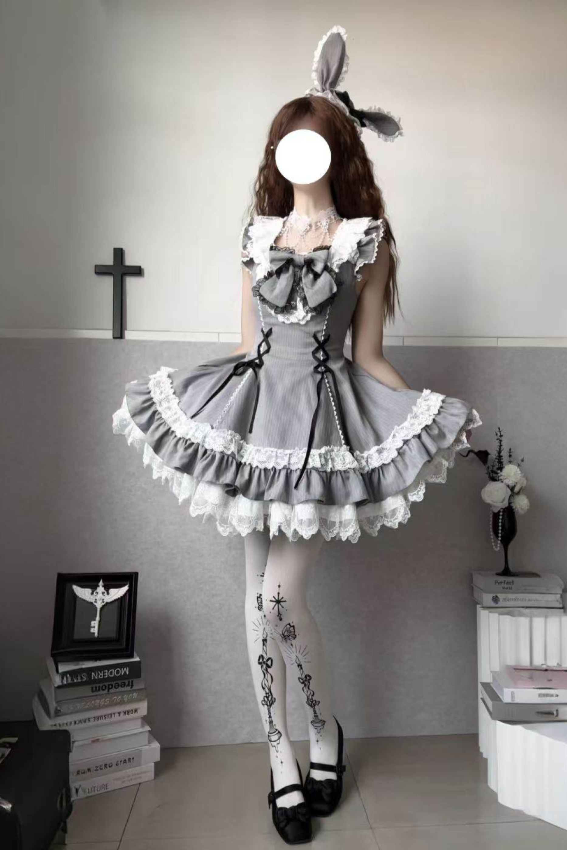 スイートロリータストライプジャンパースカートス+ラビットハット