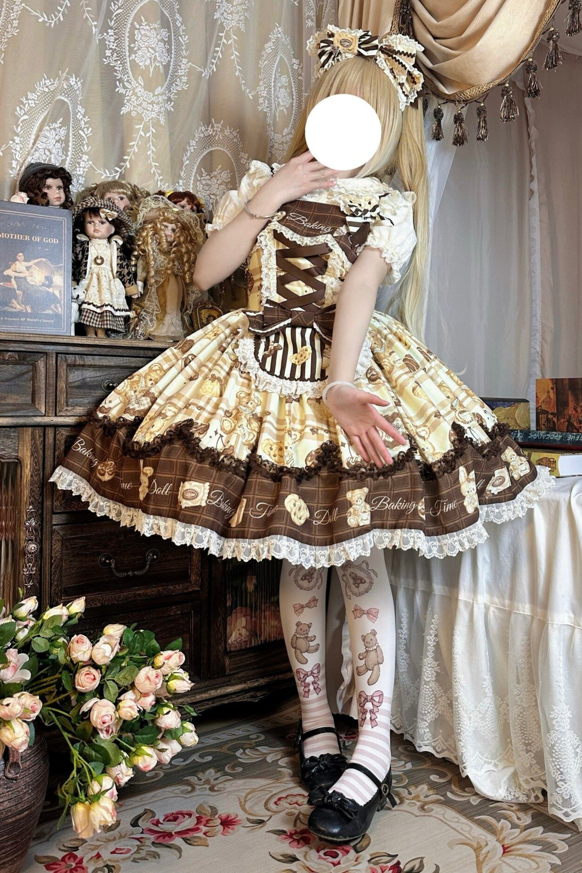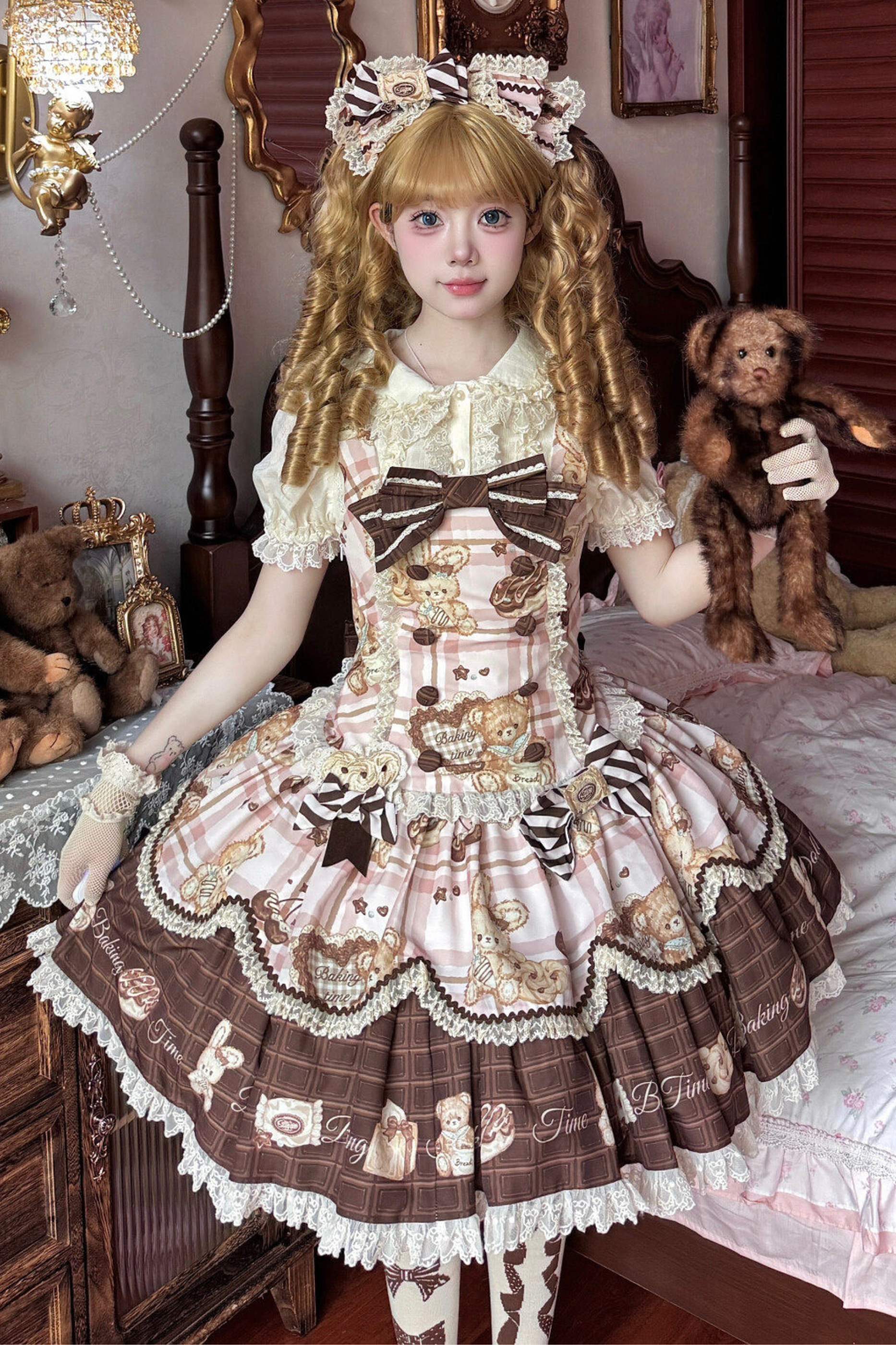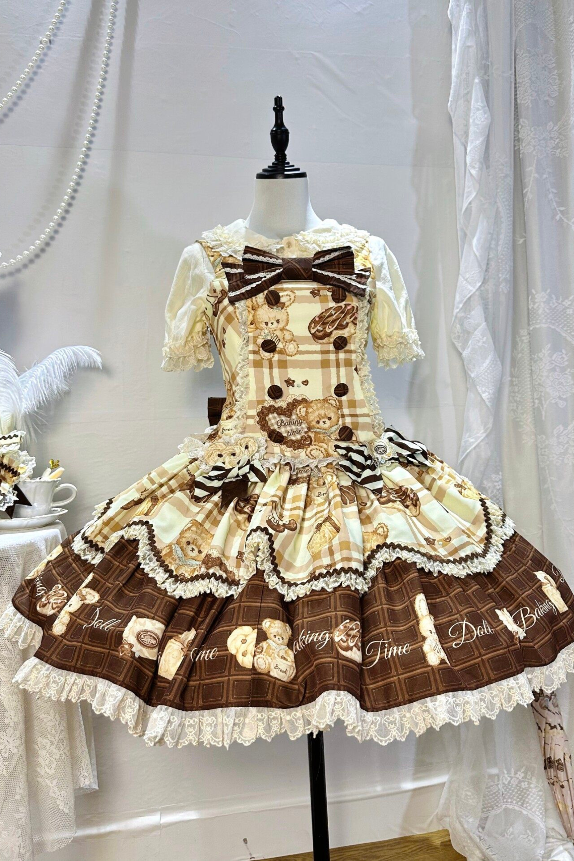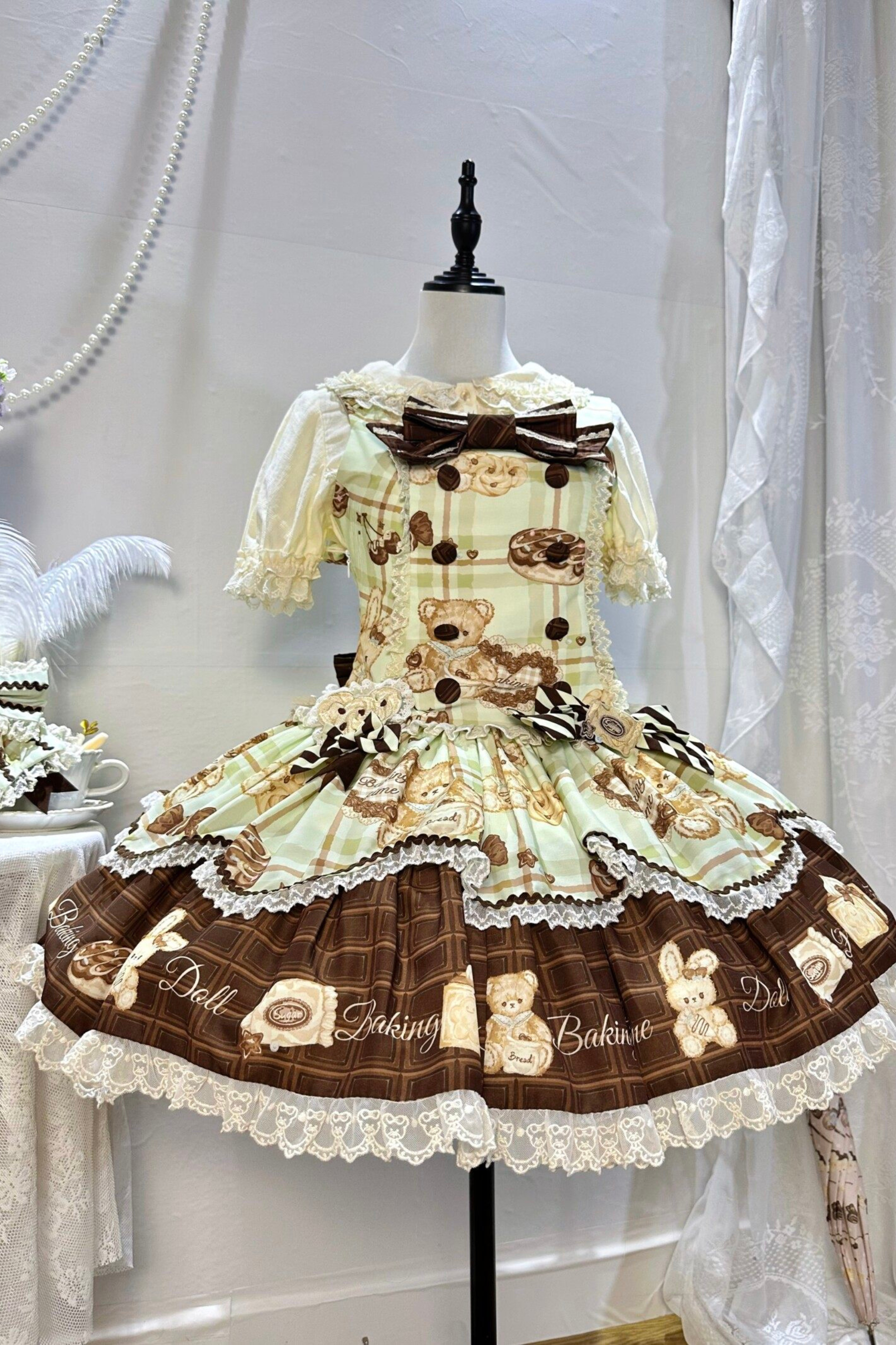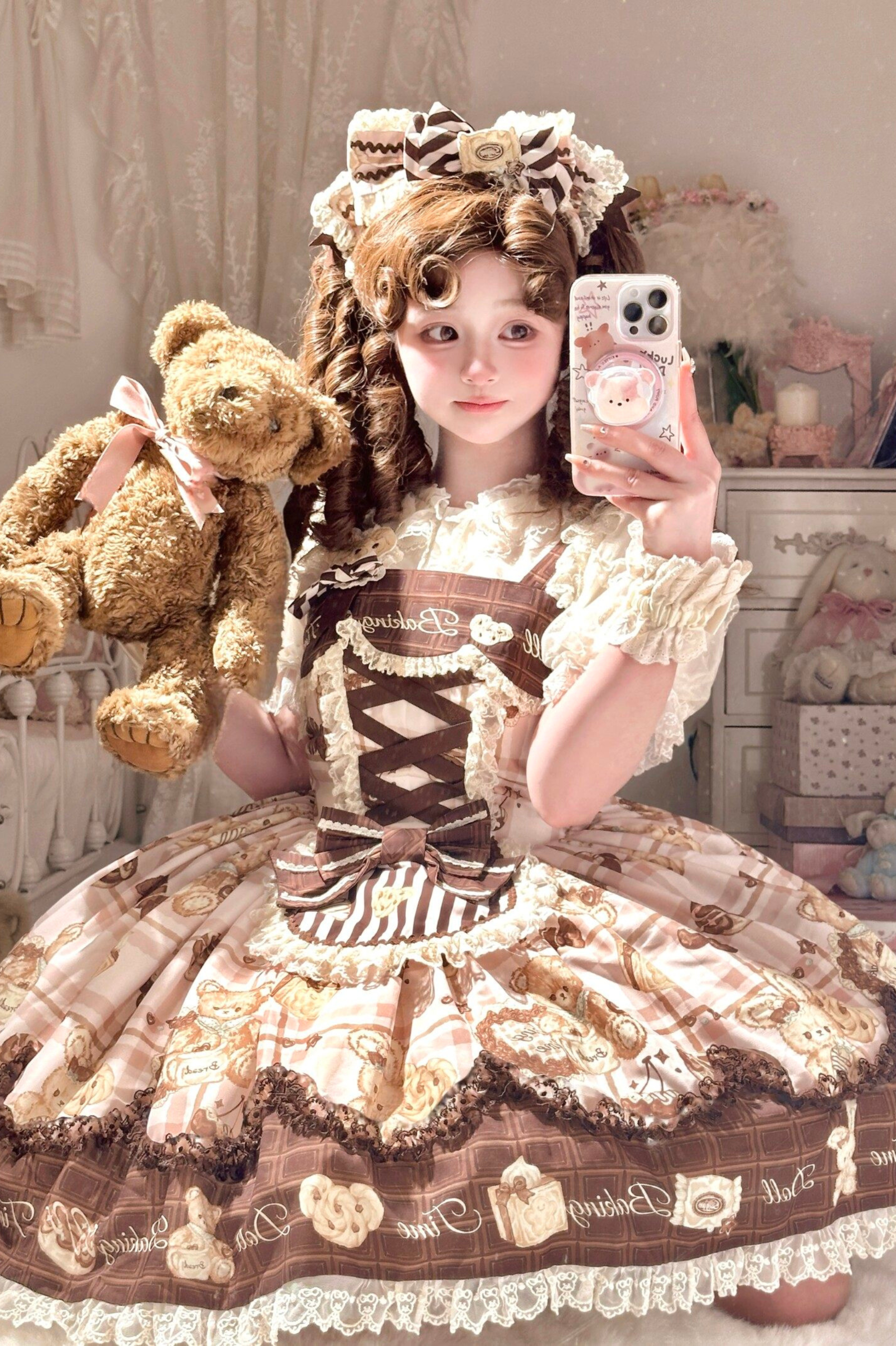 ベアティーパーティーロリータドレス+ジャンパースカート+シャツ+カチューシャ+ブローチ+エプロン