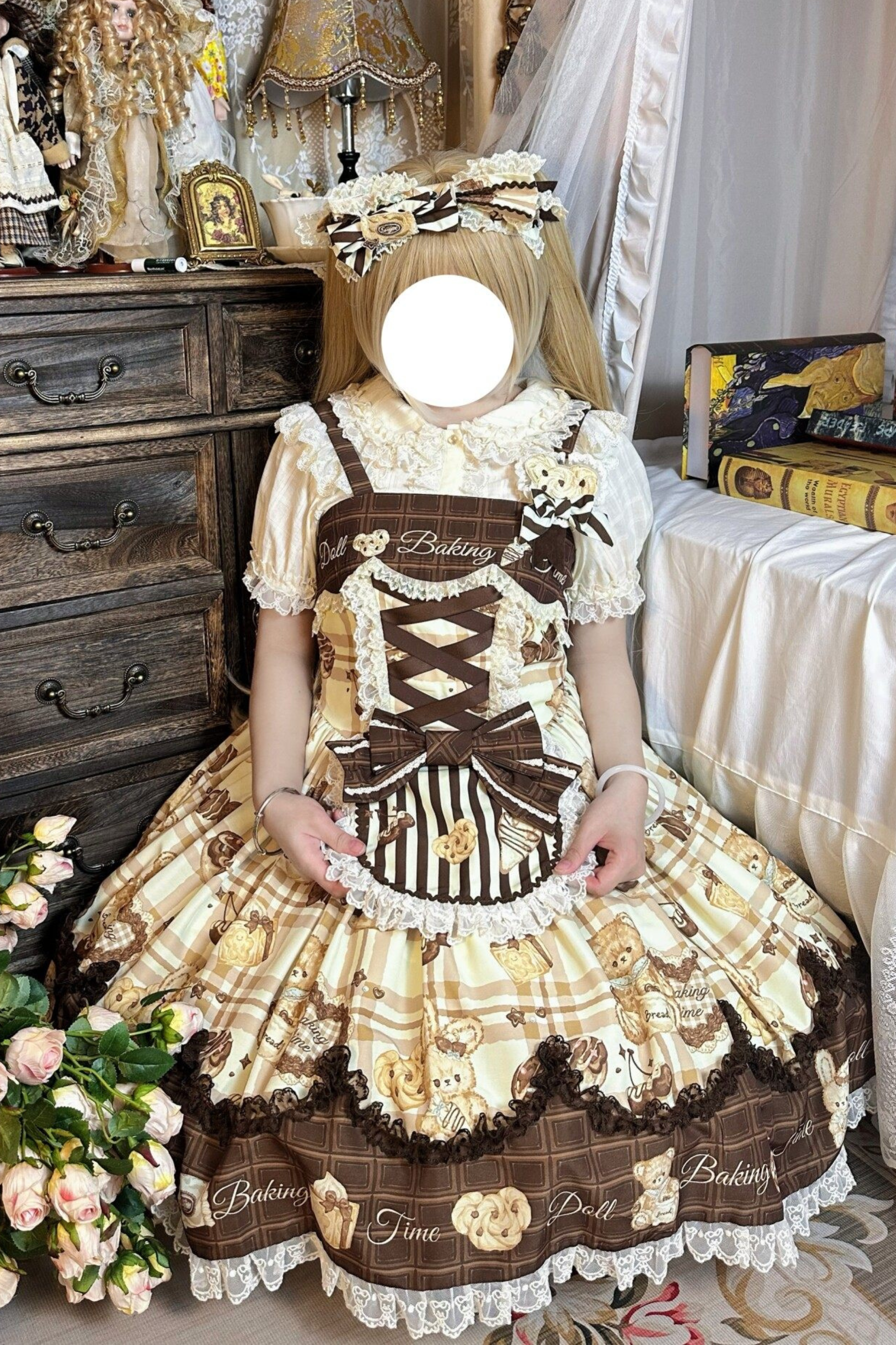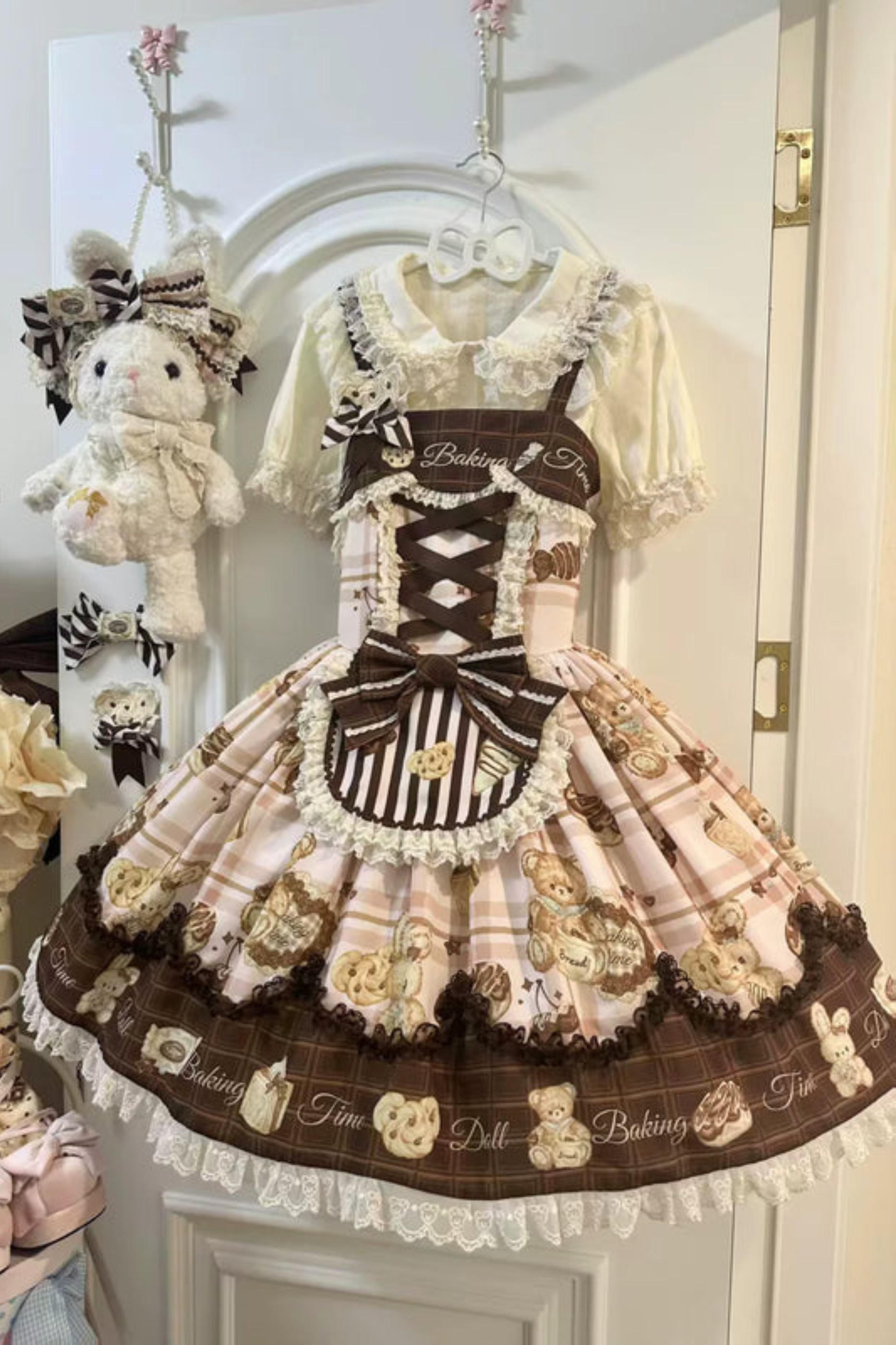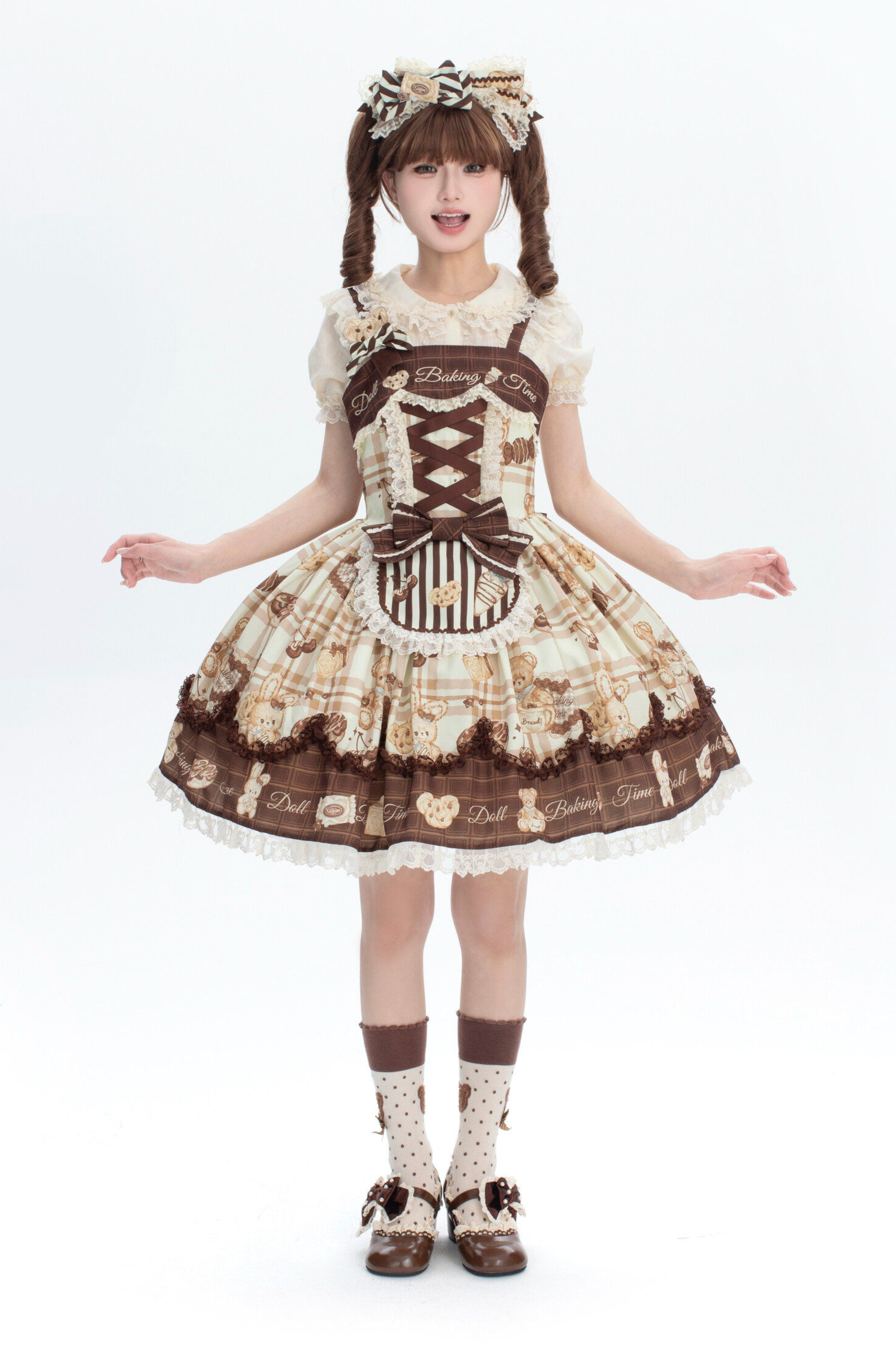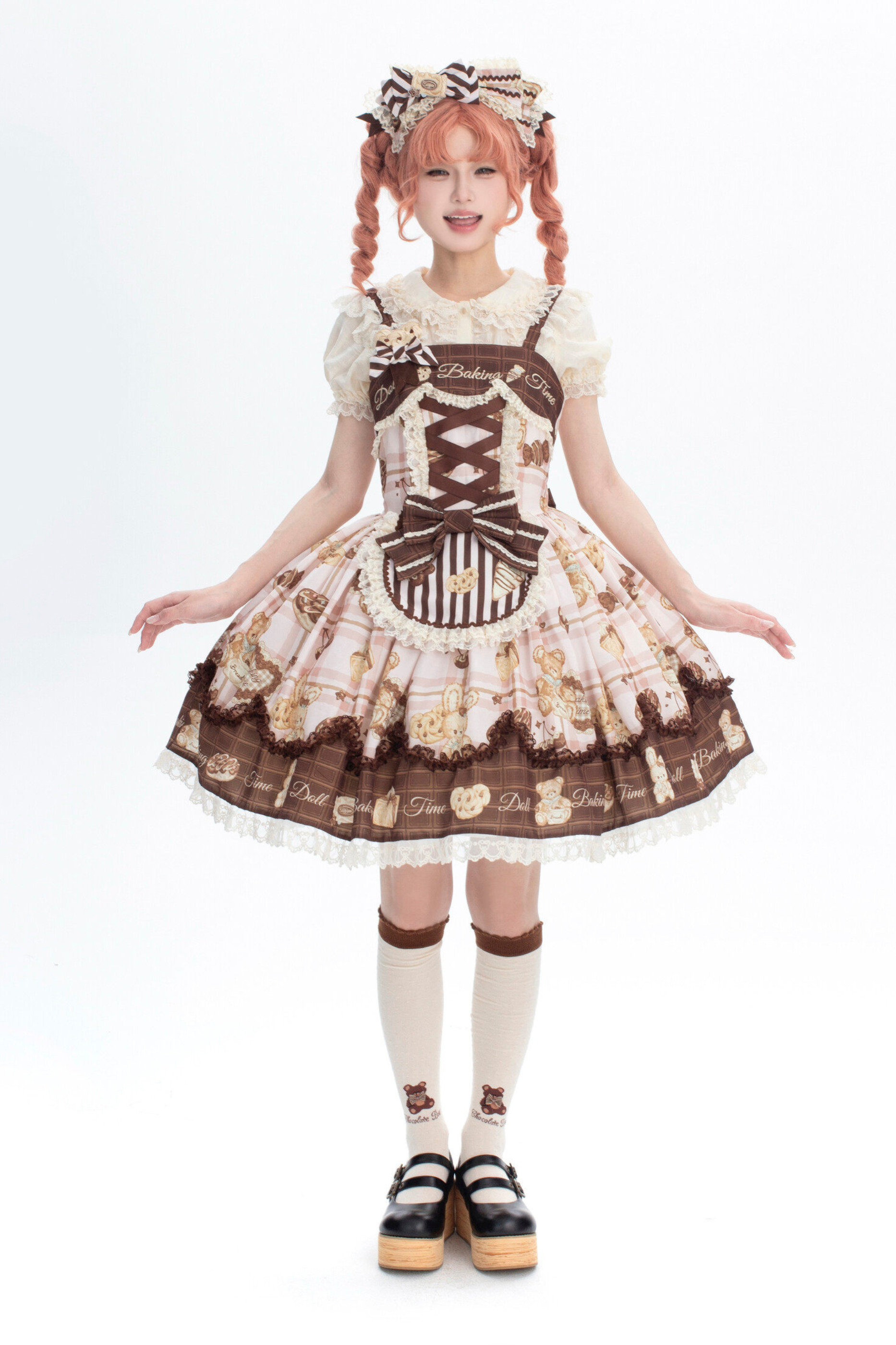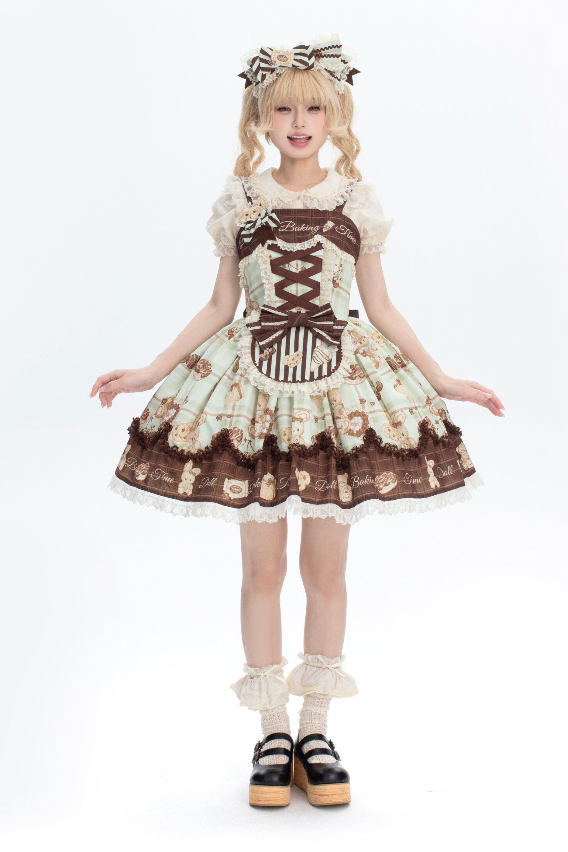 ベアティーパーティーロリータドレス+ジャンパースカート+シャツ+カチューシャ+ブローチ+エプロン