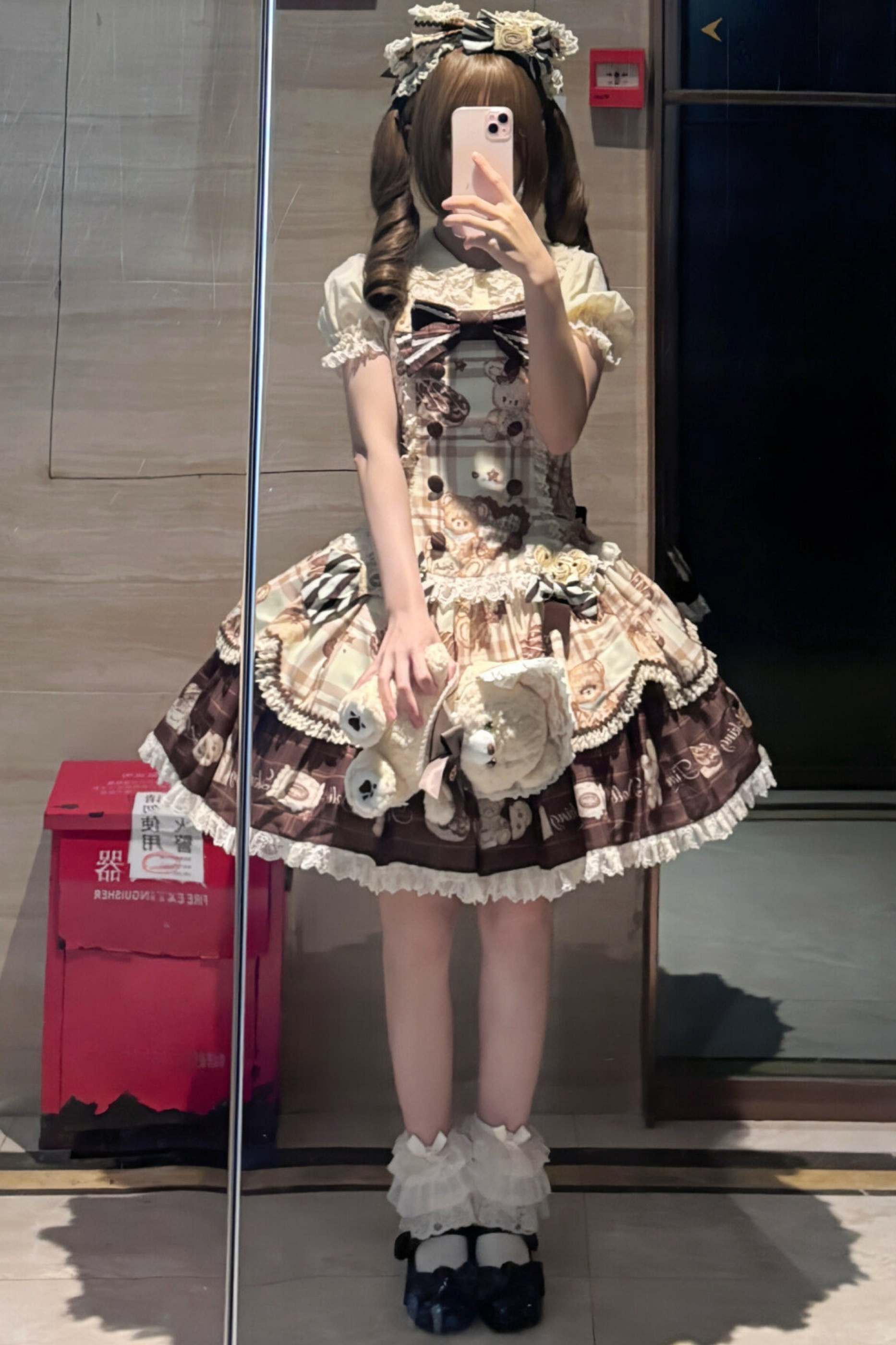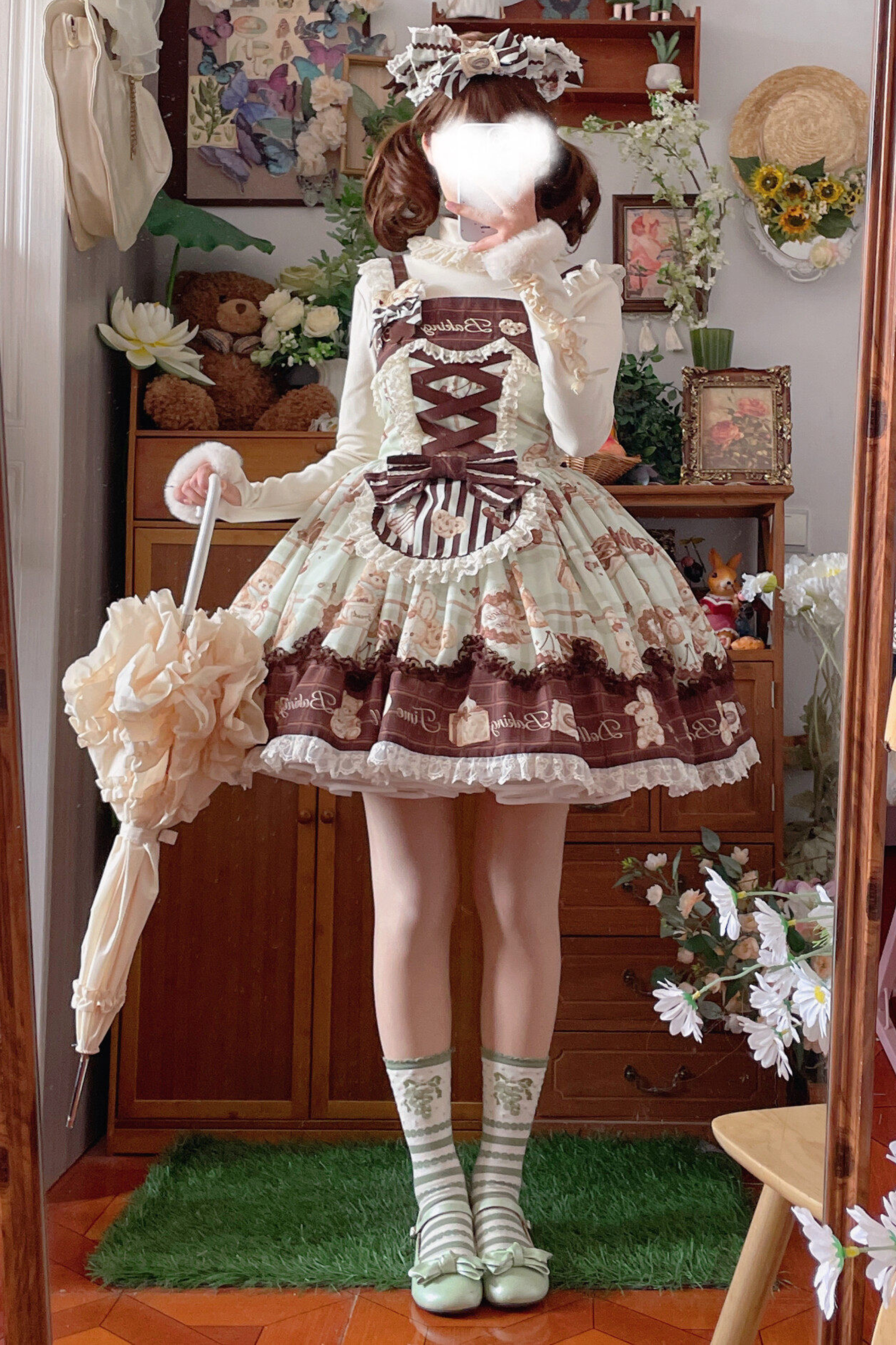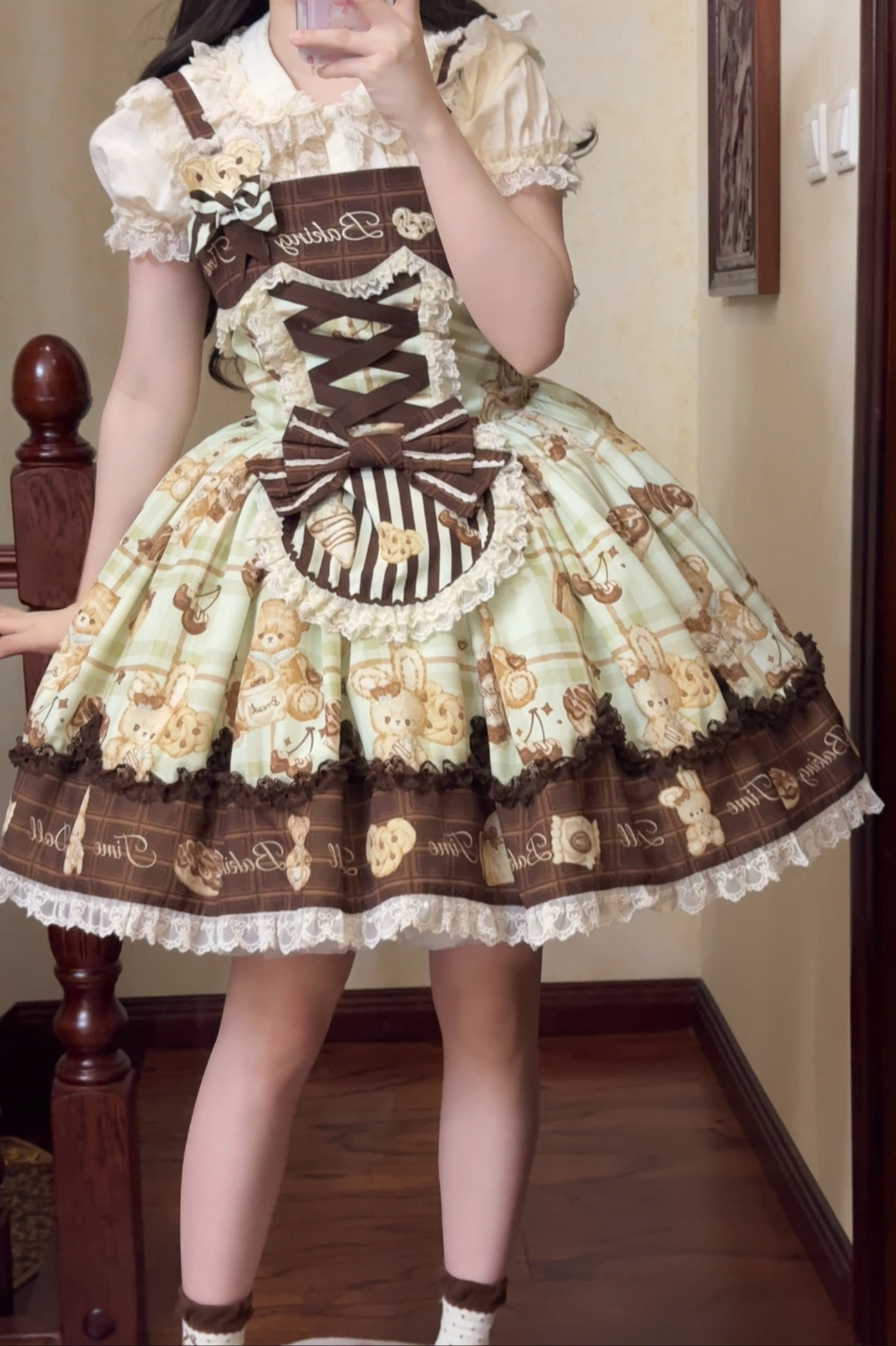 ❤ベアティーパーティーロリータドレス+ジャンパースカート+シャツ+カチューシャ+ブローチ+エプロン❤