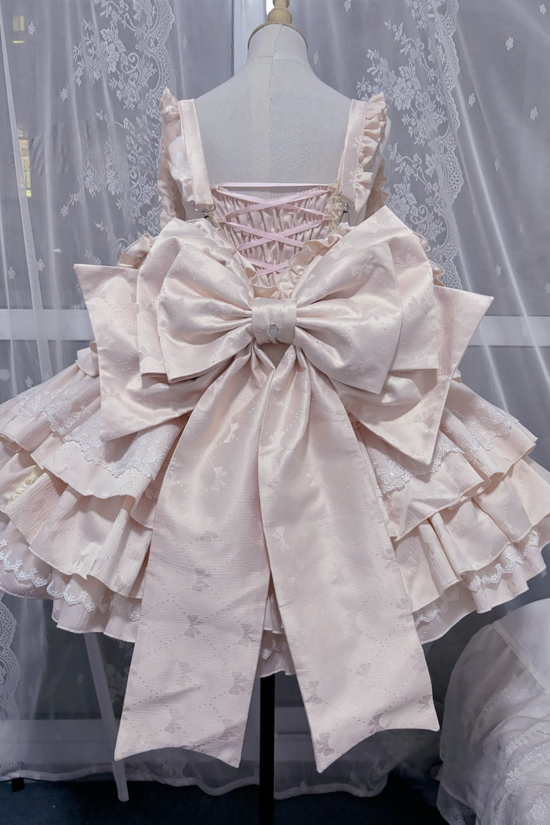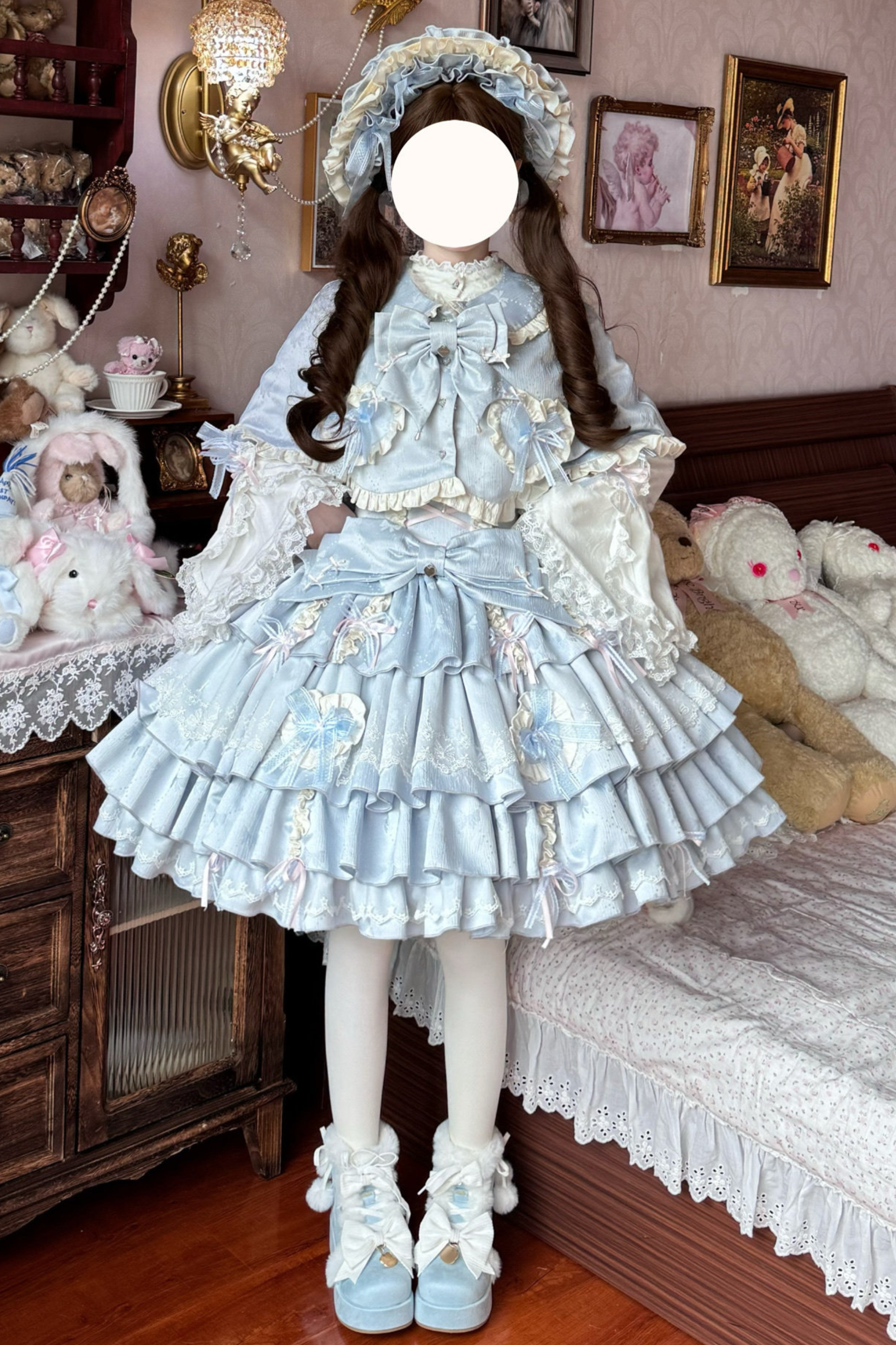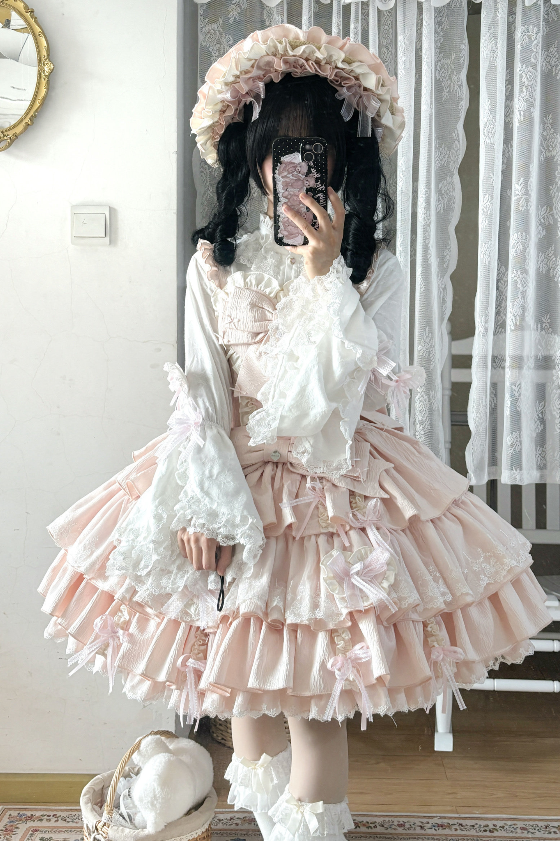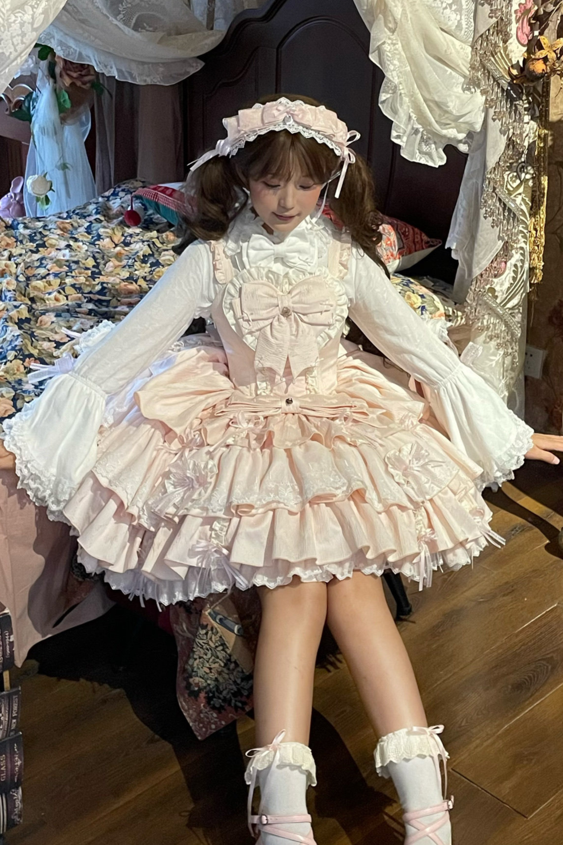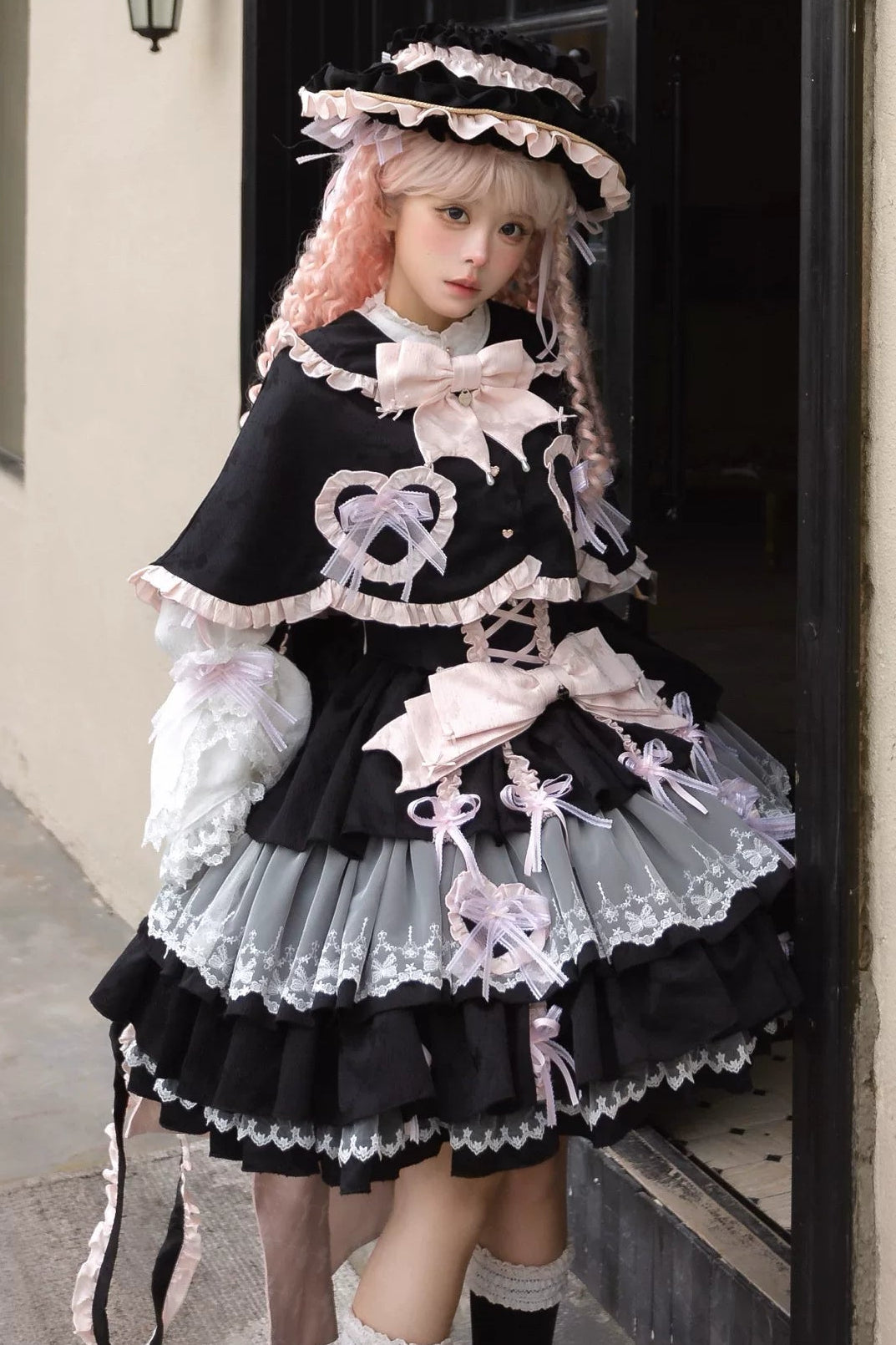 レイヤーフリルスイートプリンセスロリータジャンパースカート+テール+ヘアバンド+ケープ+ボンネット