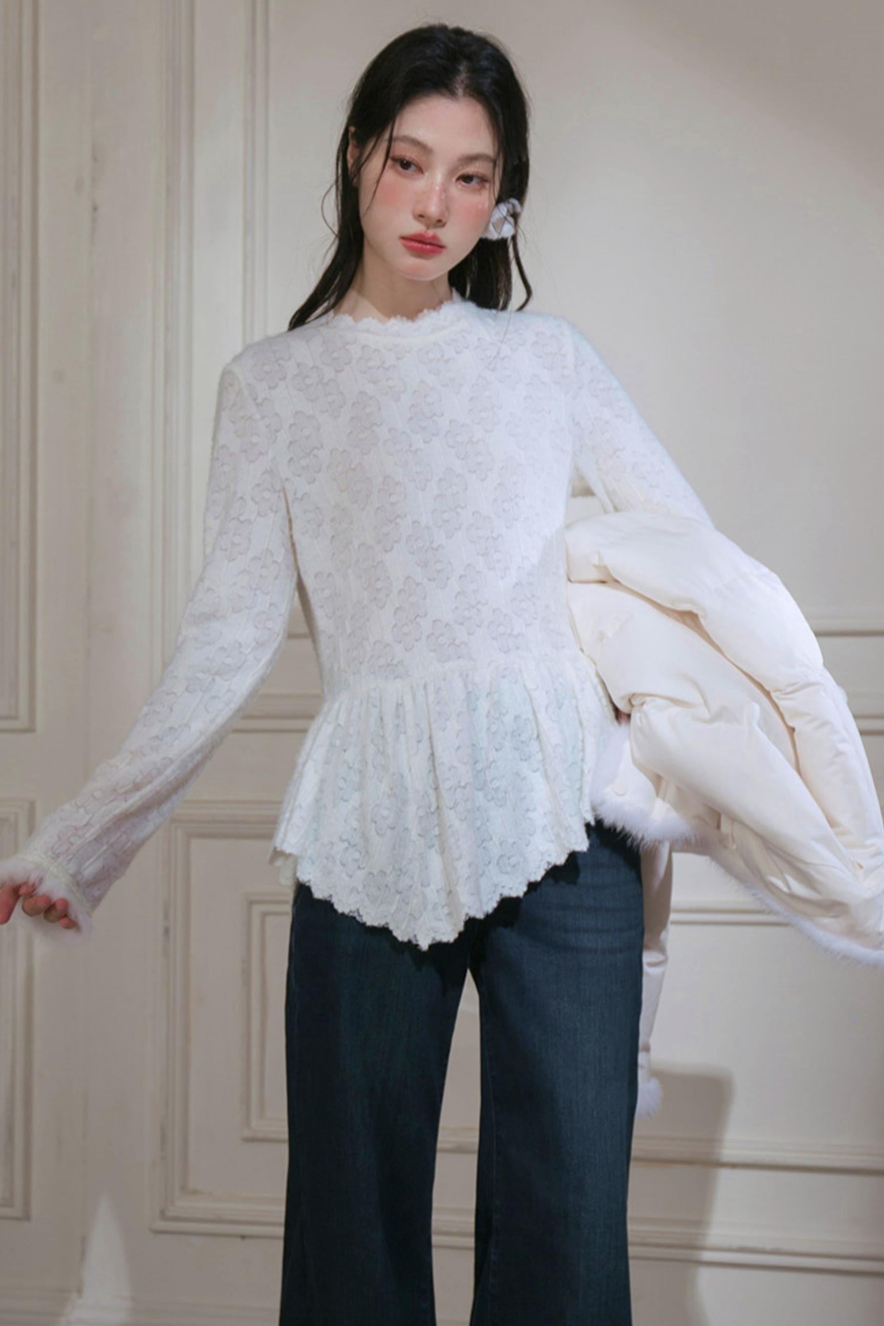 Velvet Lace Rabbit Fur Top