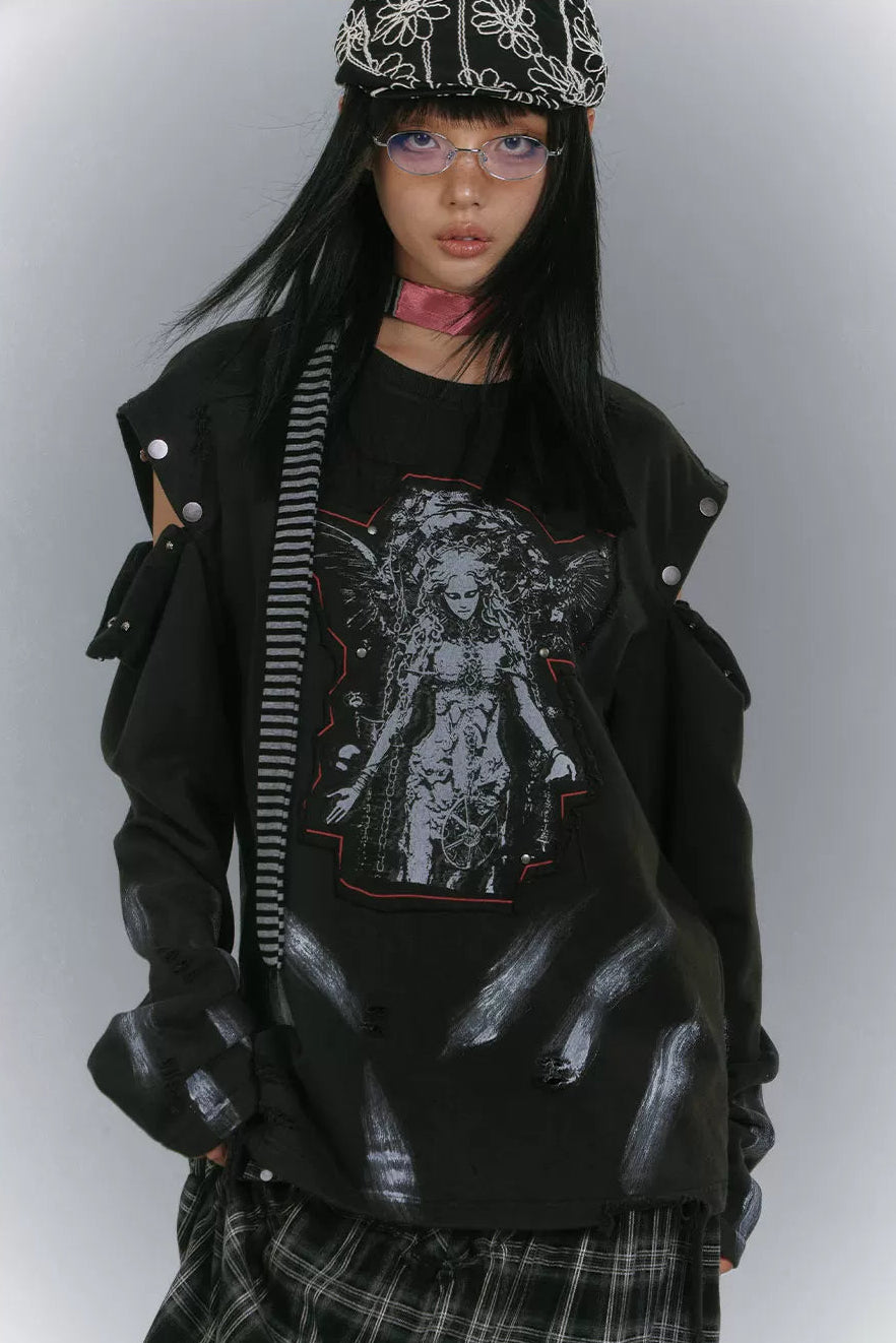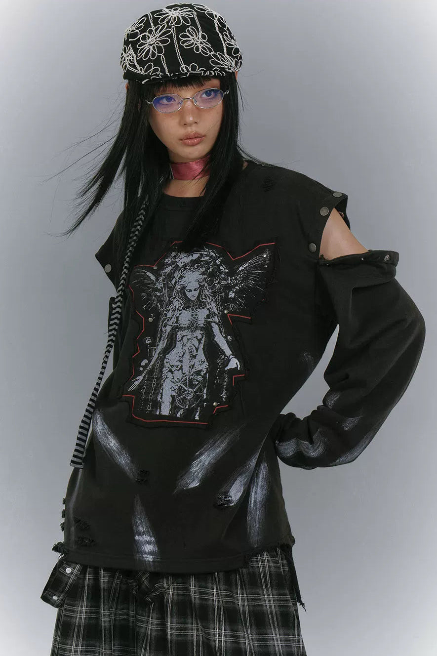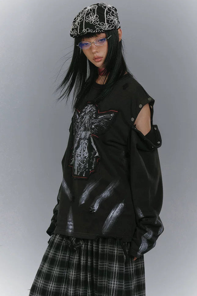❤カットアームデザインルーズモードトップス❤