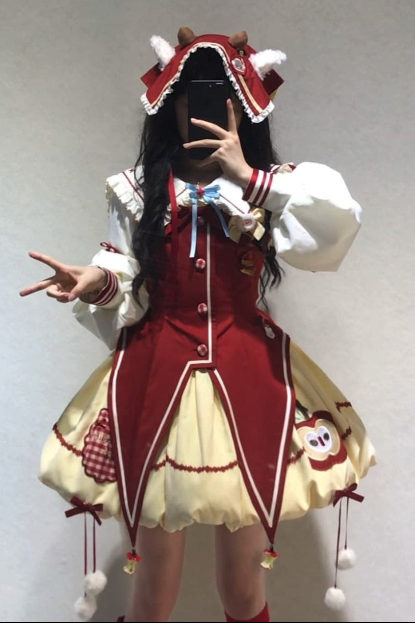 ❤︎ [October 27 reservation deadline] Fairy Tale Little Sheep Apple Balloon Clown Dress Suit + Accessories❤︎ ⚠️It may take up to 4 months for delivery due to the popularity of this product!