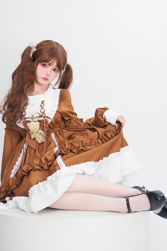 Doll Lace-Up Lolita Dress + Bustle + Bare Ribbon