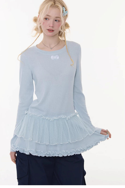Ruffled Bowknot Knit Top