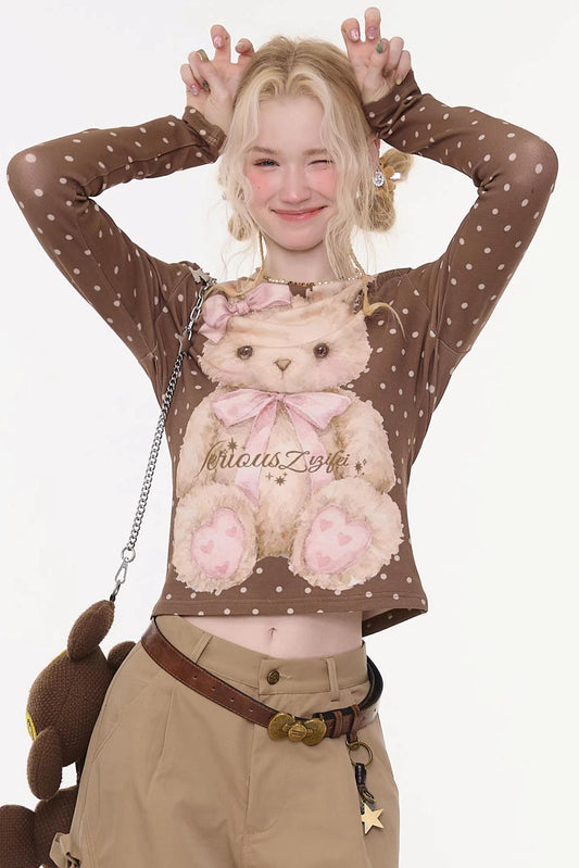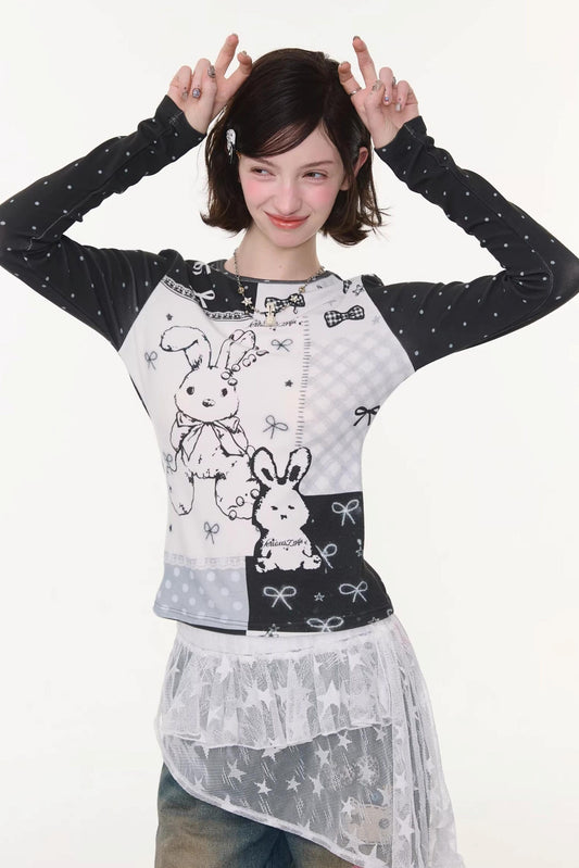Polka Dot Rabbit Print Top