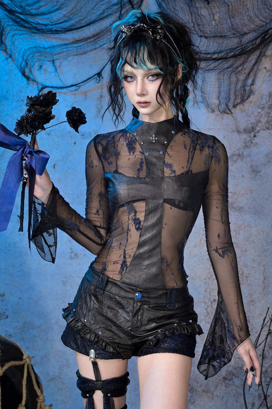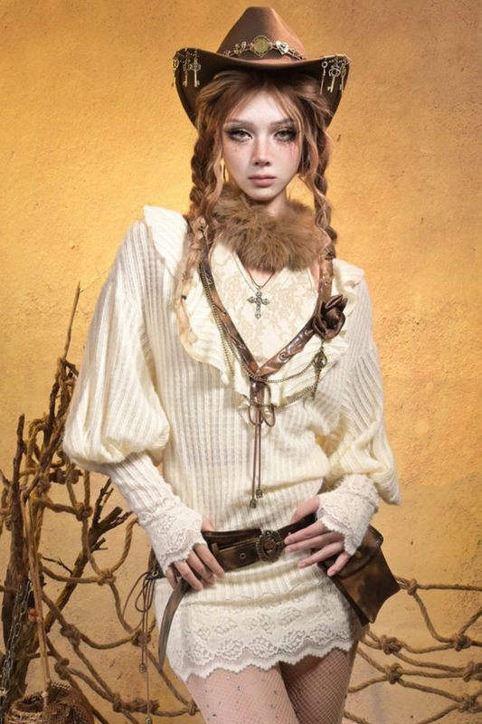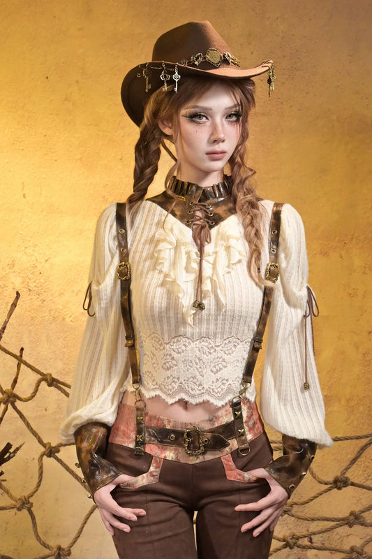 Punk Retro Knitted Top + Sleeveless Top + Belt + Brooch