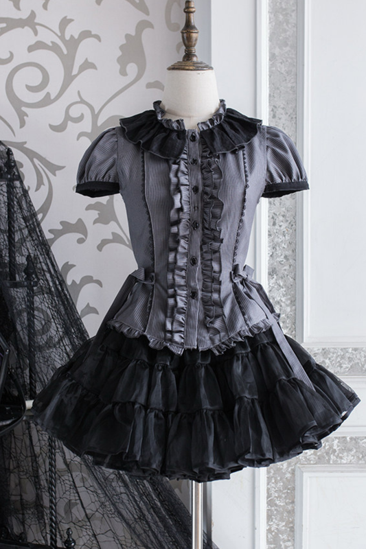 【Reservation Deadline January 29th】Black and White Gothic Jacquard Lace-up Corset + Drawstring Frill Skirt