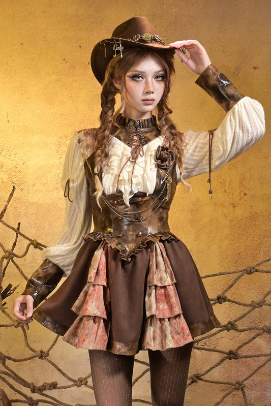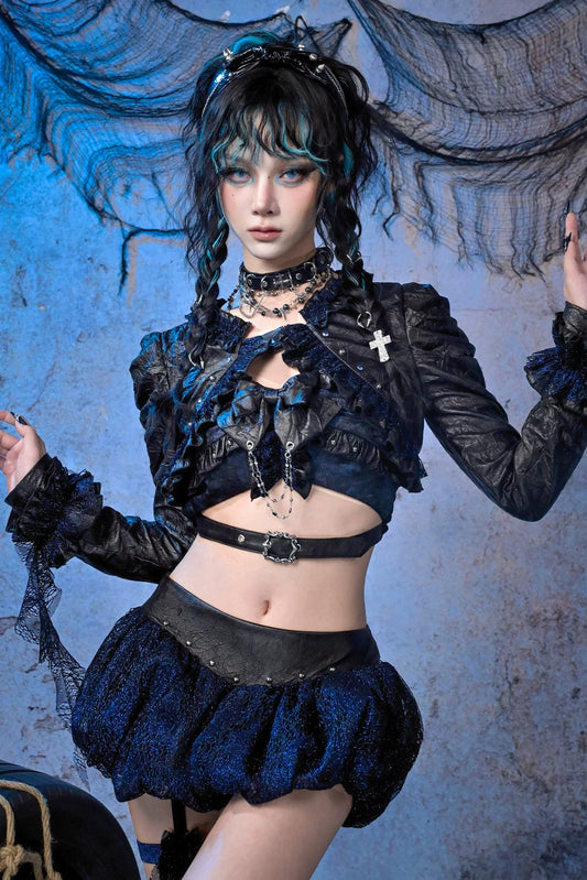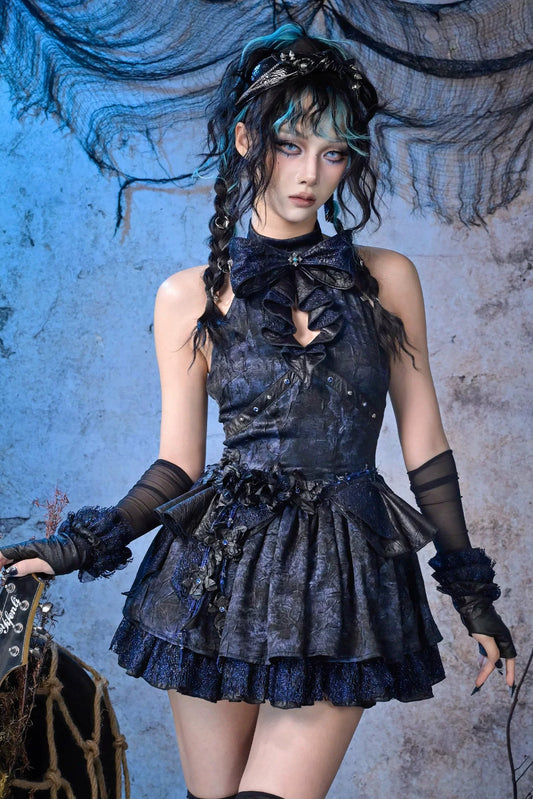 【Reservation Deadline January 29th】Gothic Lace-up Corset Bustier Top + Drawstring Frill Skirt + Butterfly Strap