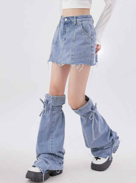 Little Butterfly Rice Slim Denim Long A Line Skirt
