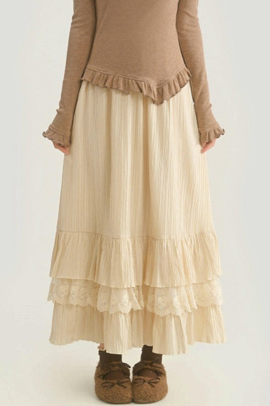 レイヤードレースハイウエストスカート