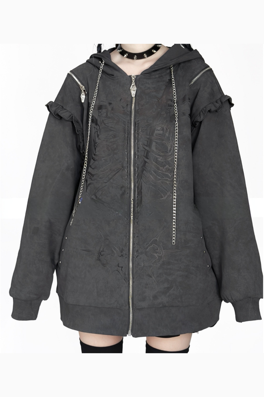 Bone Piercing Chain Hooded Jacket