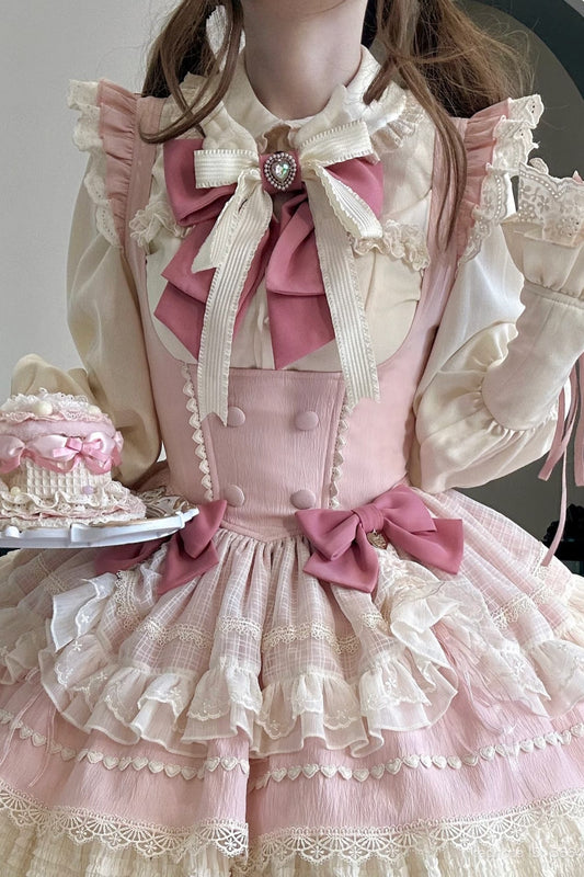 [Pre-order item] Lace Frill Collar Shirt and Skirt Set