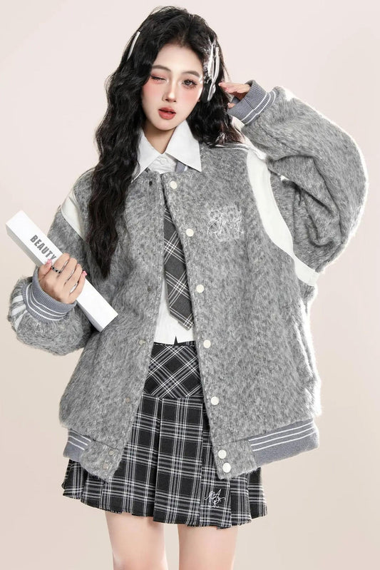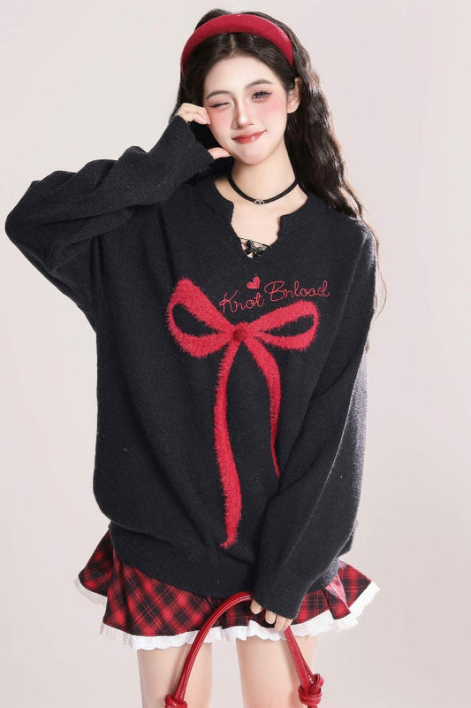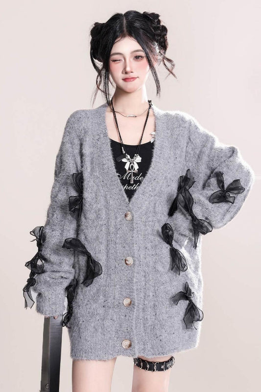 Sailor Color Sweetheart Print Dress + V-Neck Frilled Knit Cardigan