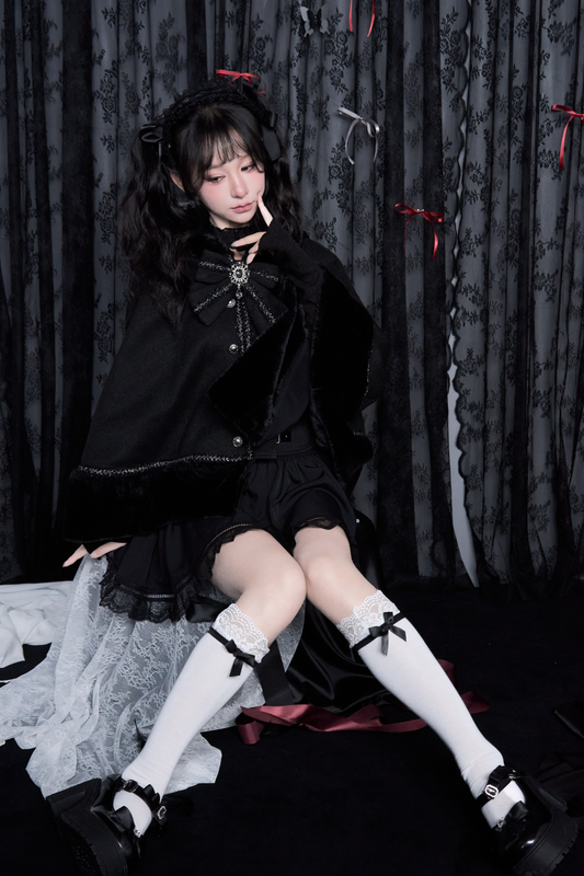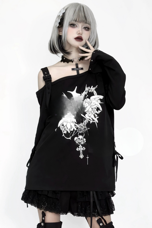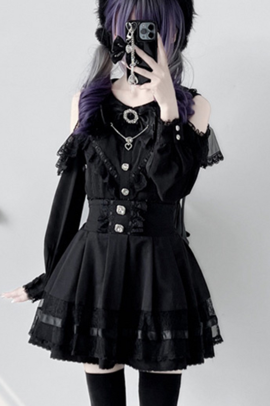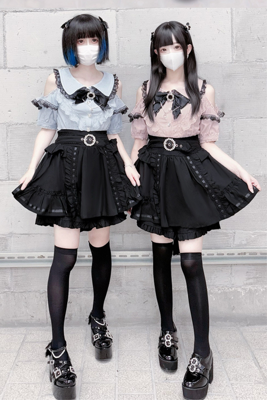[Reservations] Galaxy Clear Series Black Lace Off-the-shoulder Ribbon Flap Knit Top