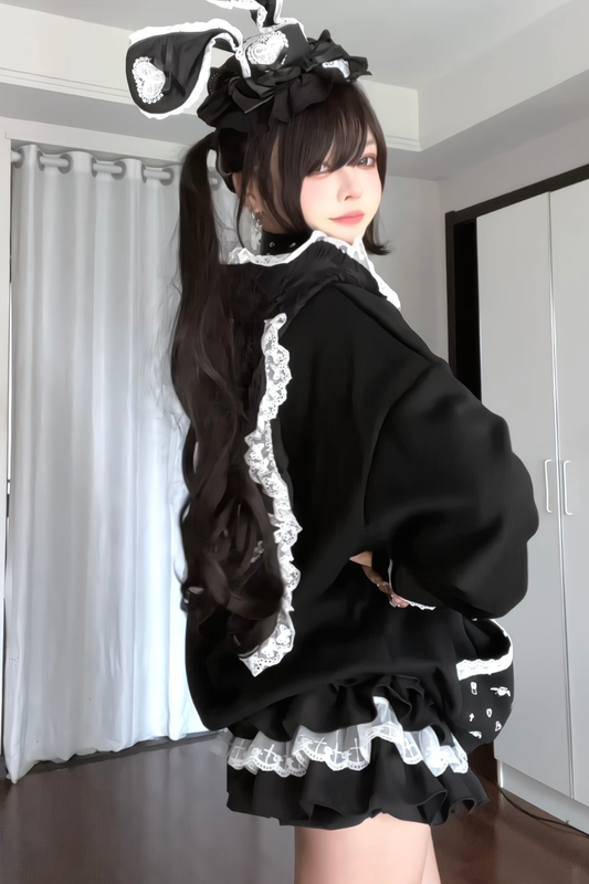 [Deadline for reservations: December 15] Black White Dark Juliet Sleeve Dress + Accessories