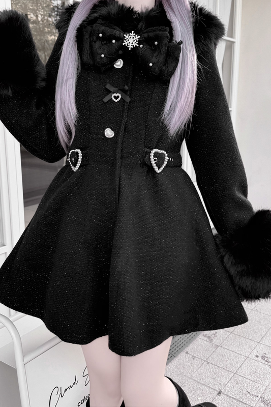 Lace-up Off-the-shoulder Fur Hooded Dress
