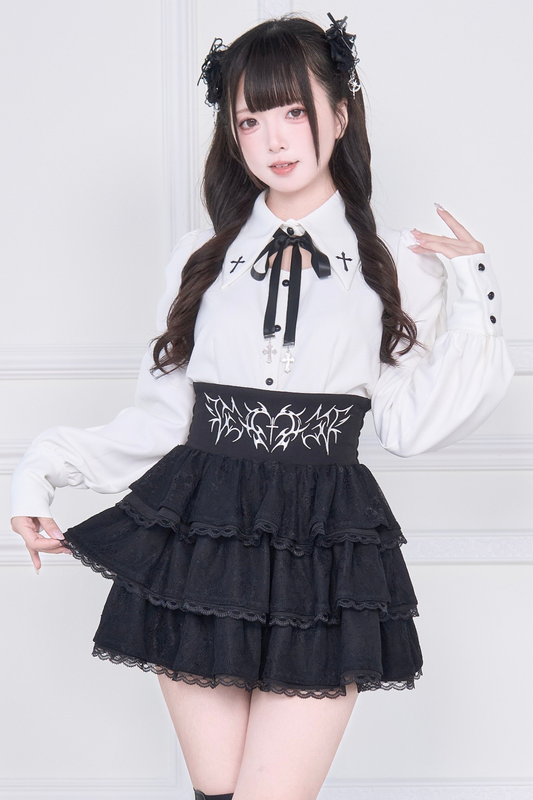 [Deadline for reservations: December 6] Black-White Lace Sheer Shoulder Knit Top + Cake Skirt