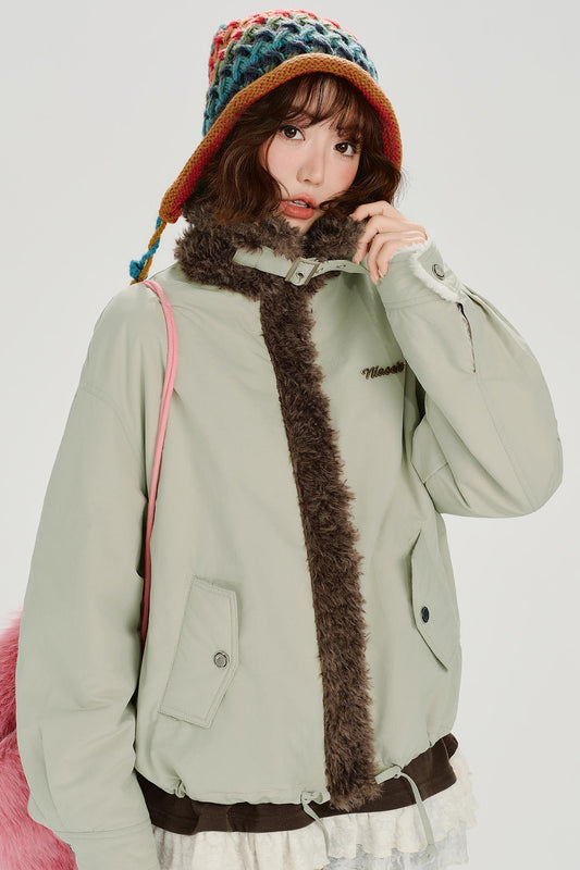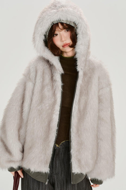 レトロファーカラーフーデッドジャケット