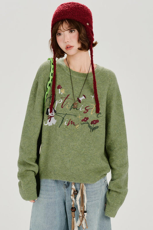 レトロエンブロイダードニットスウェター