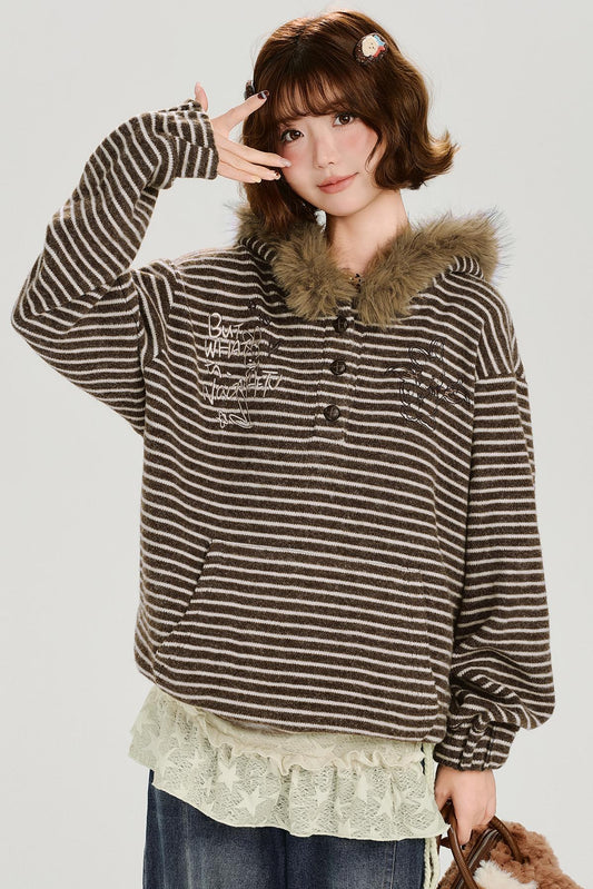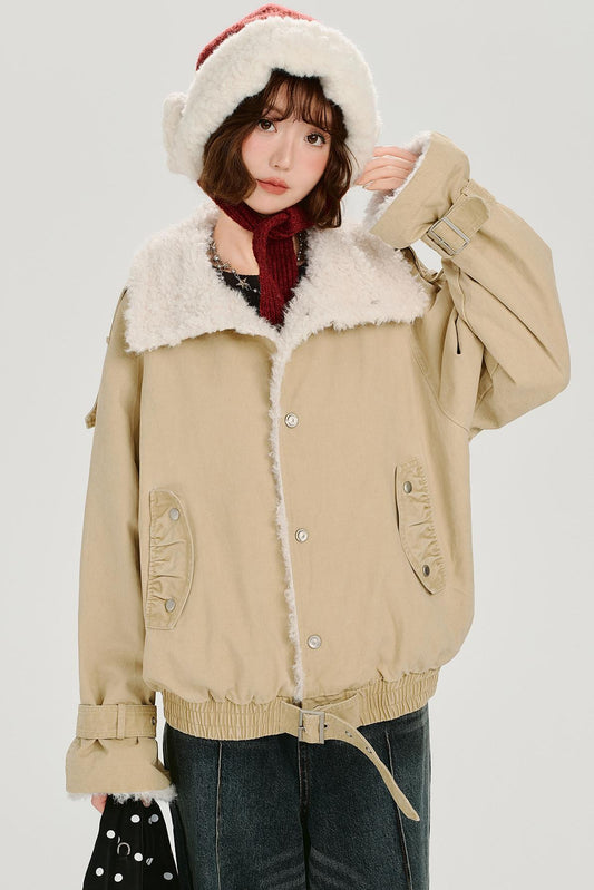 Big fur collar jacket + top + skirt + pants + check hooded jacket