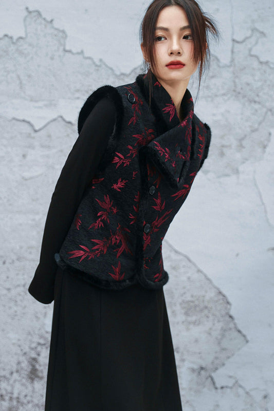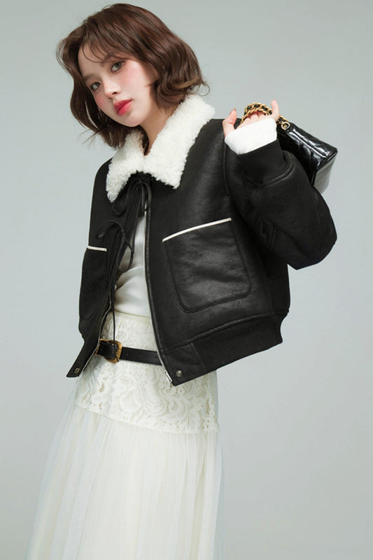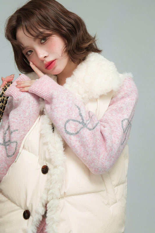 ポルカドットウィンターフリースジャケット+ベスト+トップス+スカートスカーフ