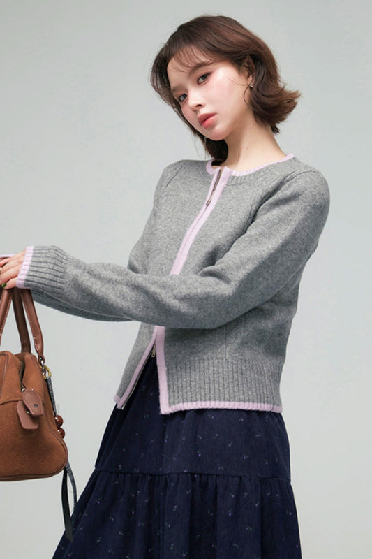 グレーウィンタープレッピーカレッジロングトップス+ショートトップス+スカート+パンツ+シャツ