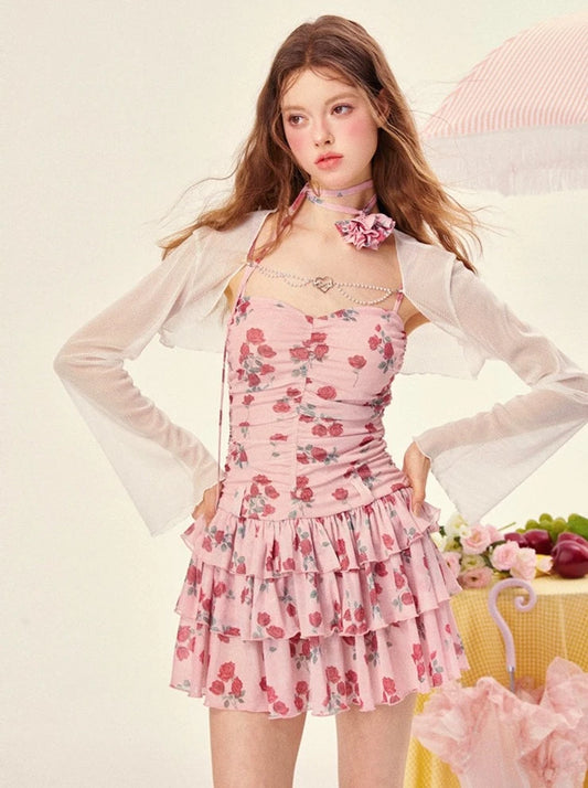 Rose Design Tight Camisole Dress