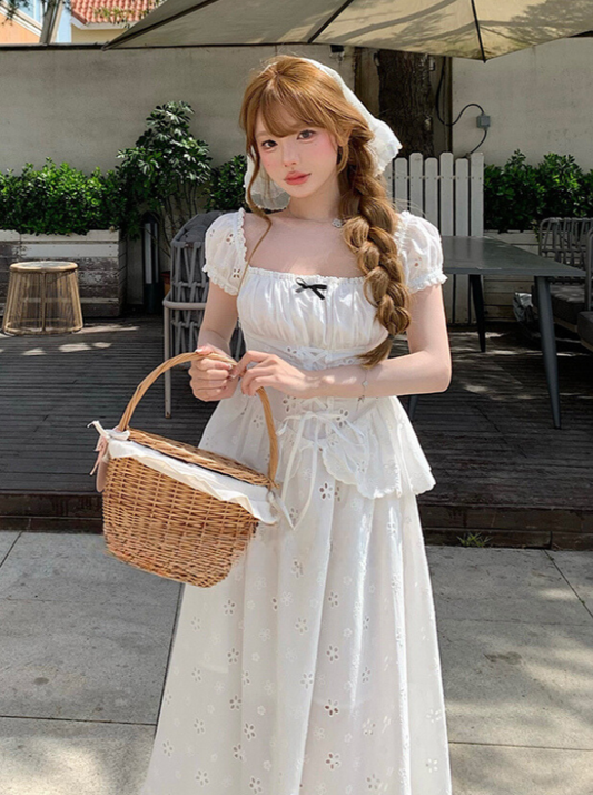 Chic French Girly Puff Sleeve Dress