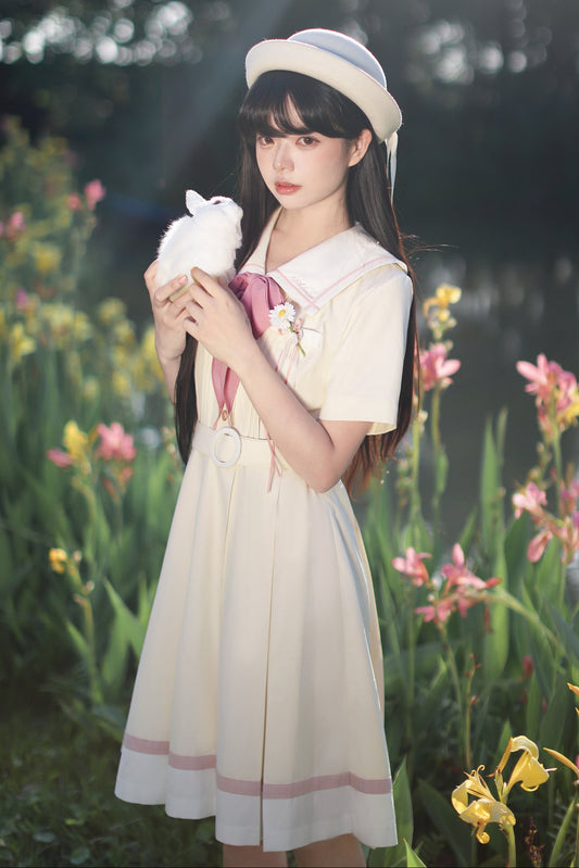 [Pre-order product] Seasol Travit Aqua Sailor Dress Setup + Hair Band + Ribbon Catsuit