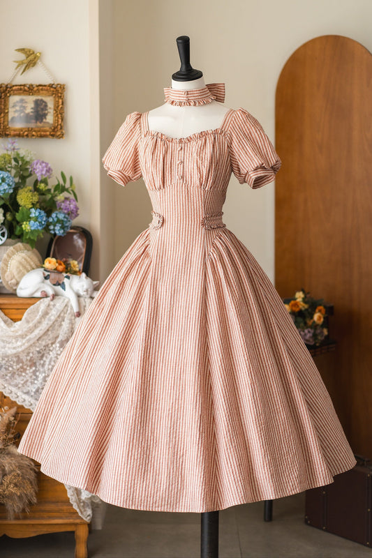 [Reservations] Retro French Elegant Classica Summer Cotton & Linen Striped Dress