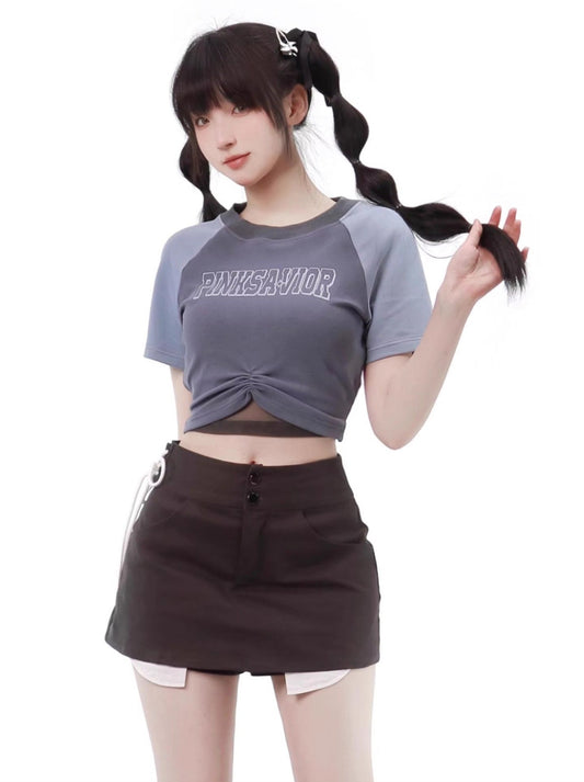 Blue Soda Summer Strap Design T -shirt Casual Pants Slim Suit