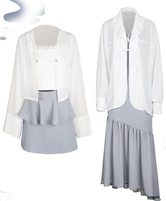 Sheer cardigan skirt & sheer jacket ruffled cami dress China setup