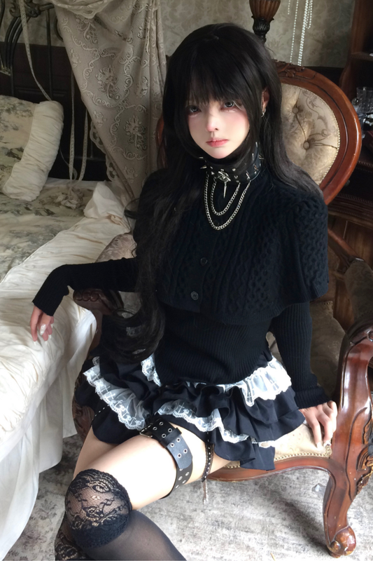 [Deadline for reservations: December 15] Dark Gothic Lace Double-Breasted Striped Suit Set + Hair Accessories