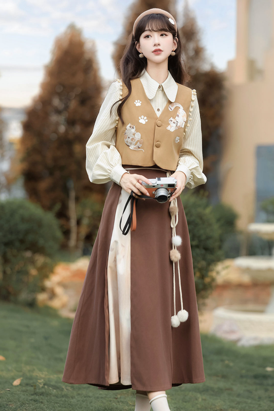 Jasmine Rain Long Sleeve Shirt + Elegant Skirt