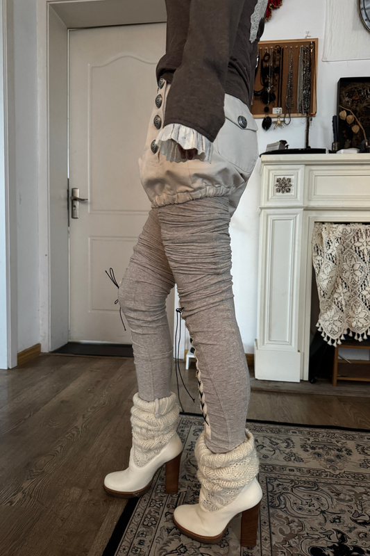 Dark Side Lace Up Denim Skirt + Cross Print Denim Leg Warmers