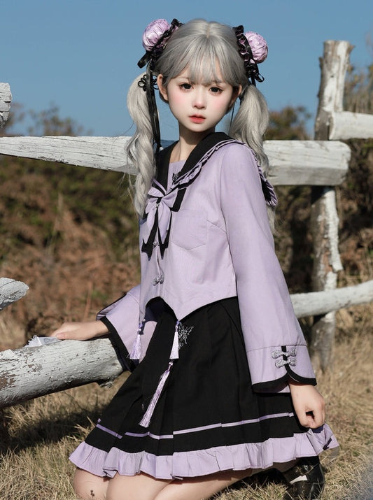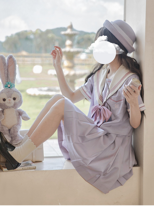 [Reservations] Lilac Summer Sailor Top + Pleated Skirt + Ribbon