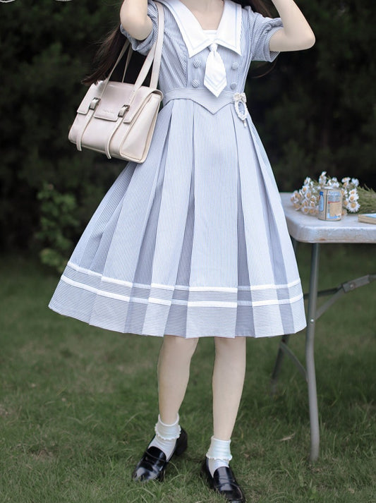[Reservations] Striped Summer Retro Girly Dress + Tie + Badge