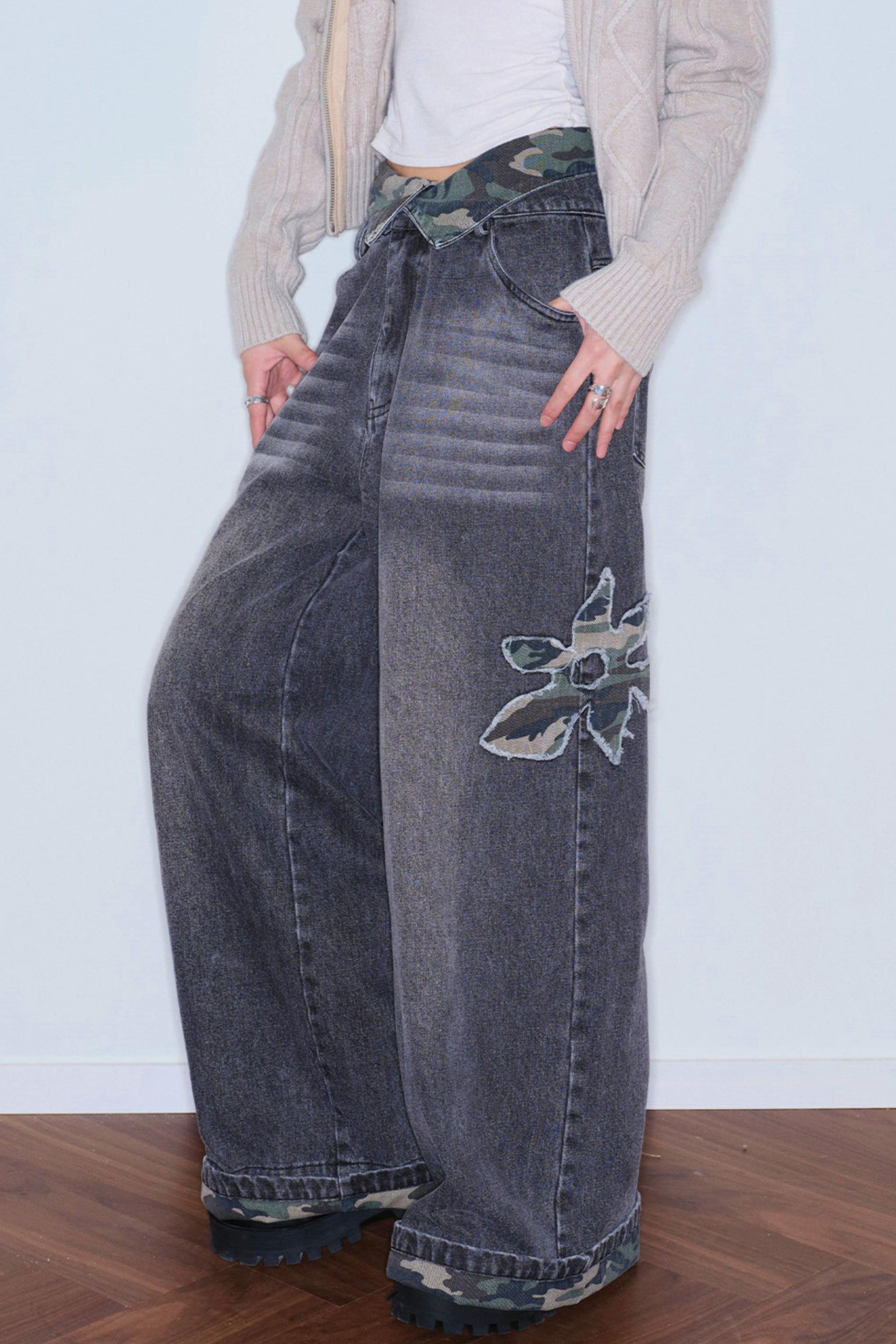 Camouflage Patchwork Embroidered Jeans