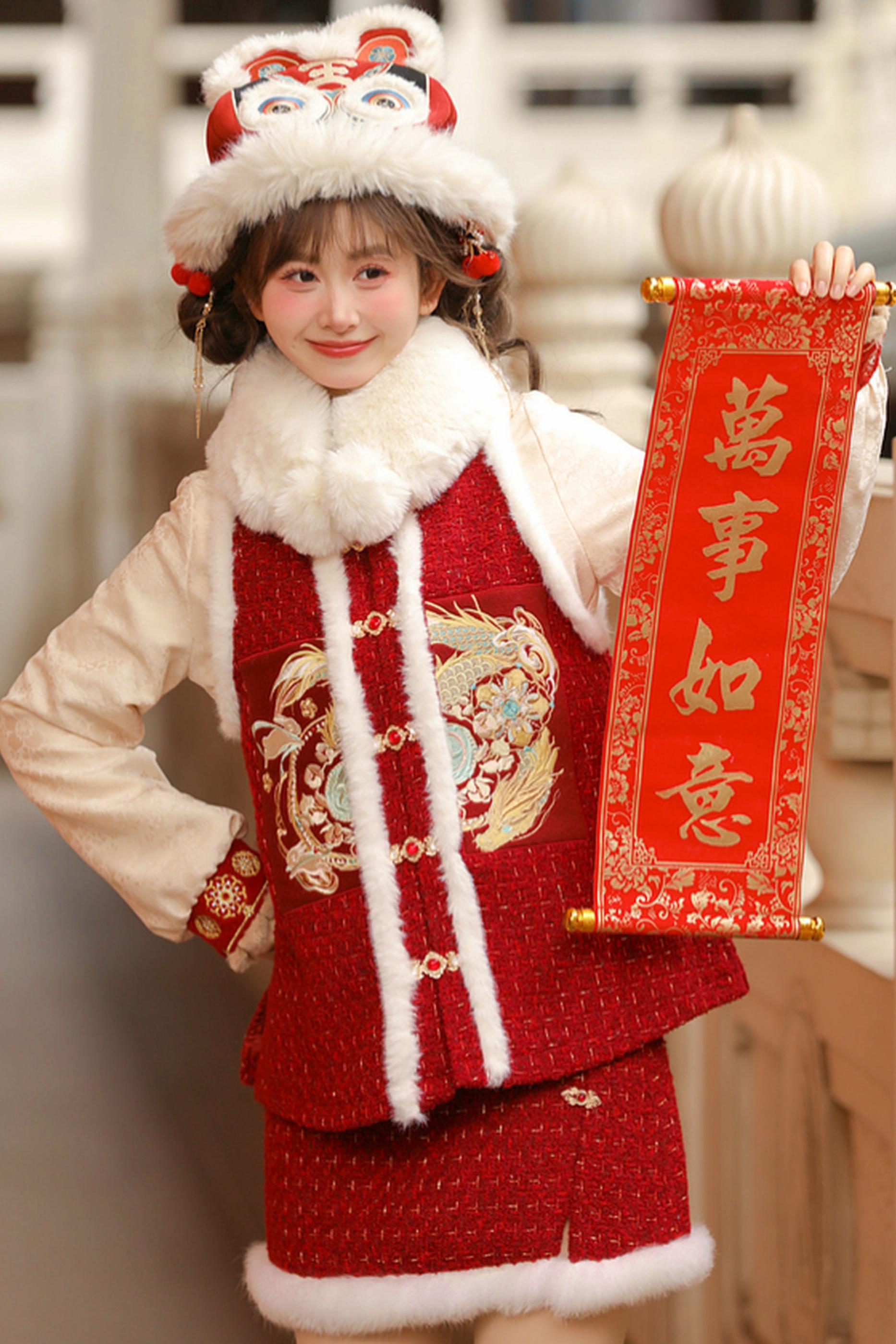 Chinese Design Fur Vest + Skirt